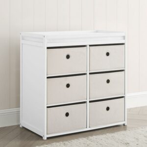 Delta Children Hayes Changing Table with Fabric Bins, Bianca White/Flax Bins