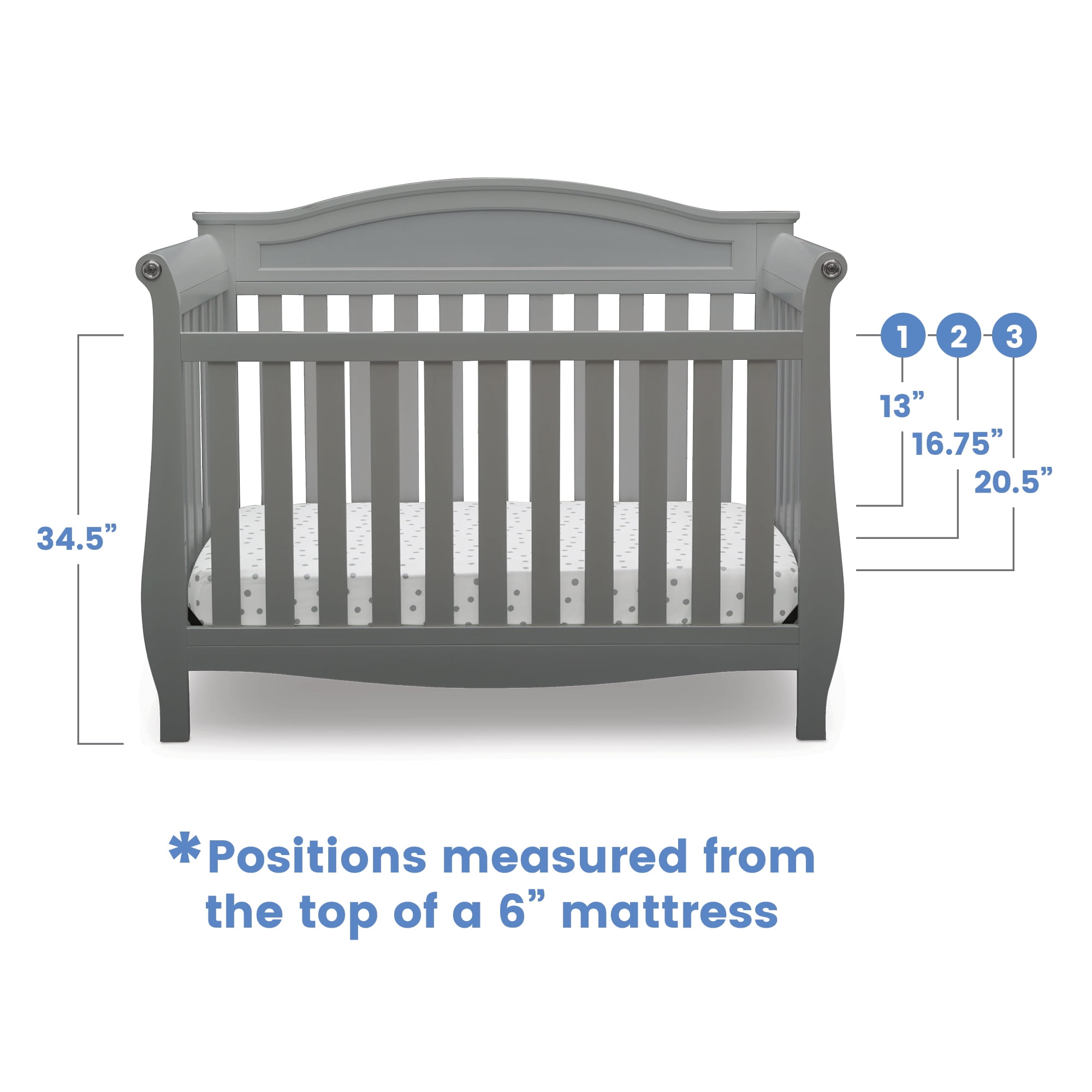 $240.78Welcome Baby home with the Lancaster 4-in-1 Convertible Crib from Delta Children-rolled arms with a decorative rosette accent and sleigh-style silhouette make this classic crib a timeless choice. Designed to grow with your little one, this baby crib features three mattress heights that allow you to lower the crib mattress as your child begins standing. Then, once your child is ready to make the move to a “big kid” bed, this crib converts into a toddler bed, daybed and full size bed to accommodate each stage of their life (Daybed Rail included; Toddler Guardrail and Full Size Bed Rails sold separately). A great value, the Lancaster 4-in-1 Convertible Crib from Delta Children is the only bed your child will ever need. Available in Gray, Bianca White and Dark Chocolate. Coordinates with other items in the Lancaster Collection from Delta Children.