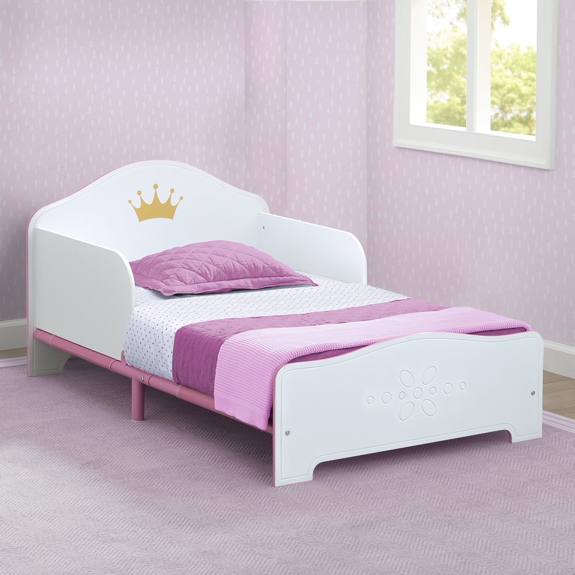 Delta Children Princess Crown Wood Toddler Bed with Fabric Mattress Support, Greenguard Gold Certified, White/Pink