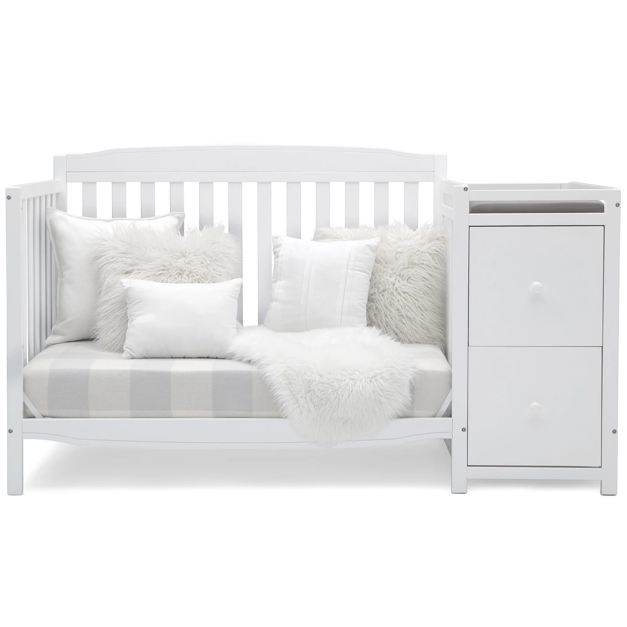 $231.34The Mason Convertible 6-in-1 crib and changer from Delta Children combines style and storage to create the perfect space-saving baby crib and changing table combo. A versatile option for those who need multi-functional nursery furniture, the Mason provides all the elements needed to create the ultimate nursery without taking up a lot of floor space. Built to accommodate every stage of your child’s life, this crib features three mattress height positions that can be easily lowered as your baby begins to sit or stand. Plus, this crib converts into a toddler bed, daybed, sofa, full-size bed with headboard only, and full-size bed with headboard and footboard. The secure changing table section includes a changing pad on top, then underneath two drawers and an open cubby space to help keep your baby essentials close at hand. Everything you need to furnish your nursery. Assembled Dimensions: 71.25″W x 30.75″D x 40.75″H