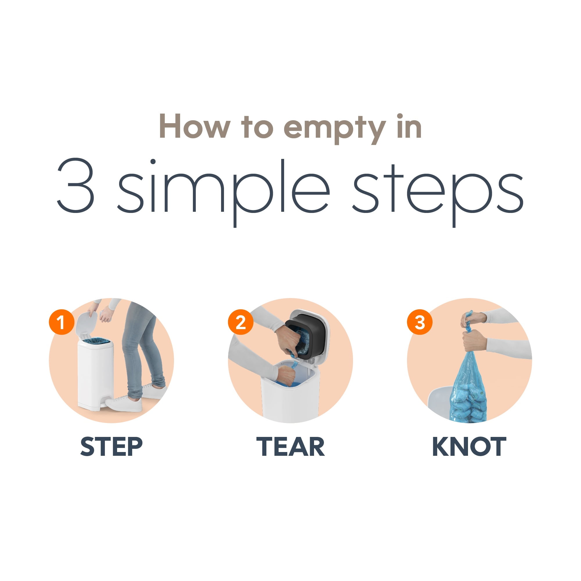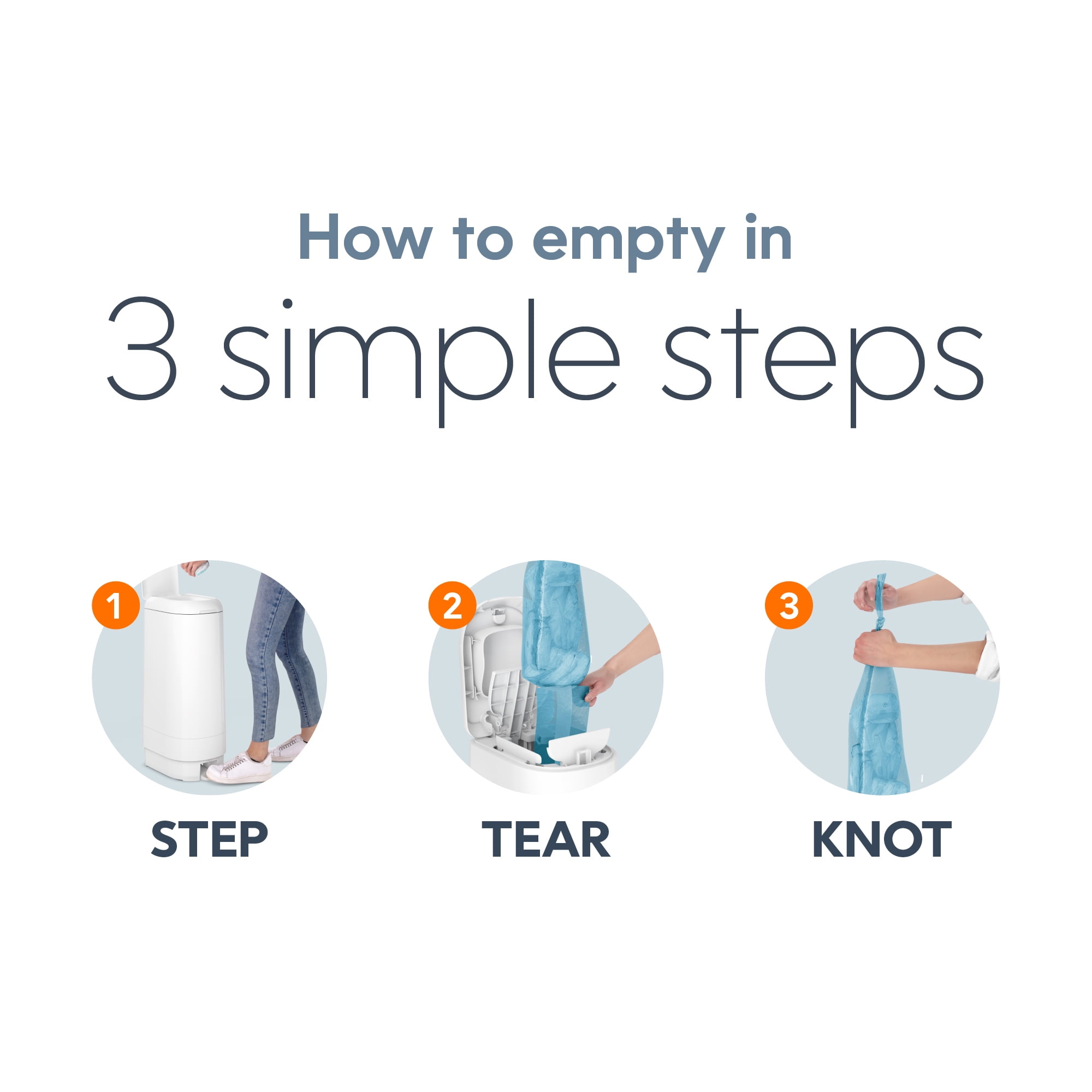 $77.37Control the odors of diapers once and for all! The Complete pail has a double Air-Tite® clamps that eliminates and locks in diaper odors and a carbon filter. It also has a foot pedal for hands-free operation and requires no bending for ultimate convenience. The diaper pail can hold up to 36 newborn-sized diapers and includes round refills that can hold up to 2160 newborn-sized diapers, meaning fewer trips to the trash. Our refill bags are made from the durable multi-layer antimicrobial film with odor-locking barrier technology. Includes 8 Clean Laundry scented round refills that can hold up to 2160 newborn-sized diapers and 1 carbon filter.
