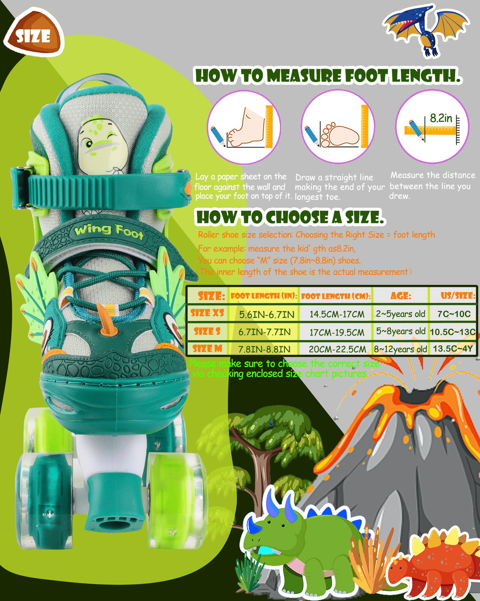$51.59WESKIFAN Dinosaur 🦖Roller skates 🦕DINOSAUR CREATIVE DESIGN Make kids feel like they are in Jurassic World, full of fun and imagination WESKIFAN and children become friends. It is a partner who understands and accompanies children. Each product is in line with the innocent and cute characteristics of children, refusing to be overly adult. WESKIFAN’s product design often uses bright colors, cute animals, and vibrant nature into the products to accompany children’s healthy growth.