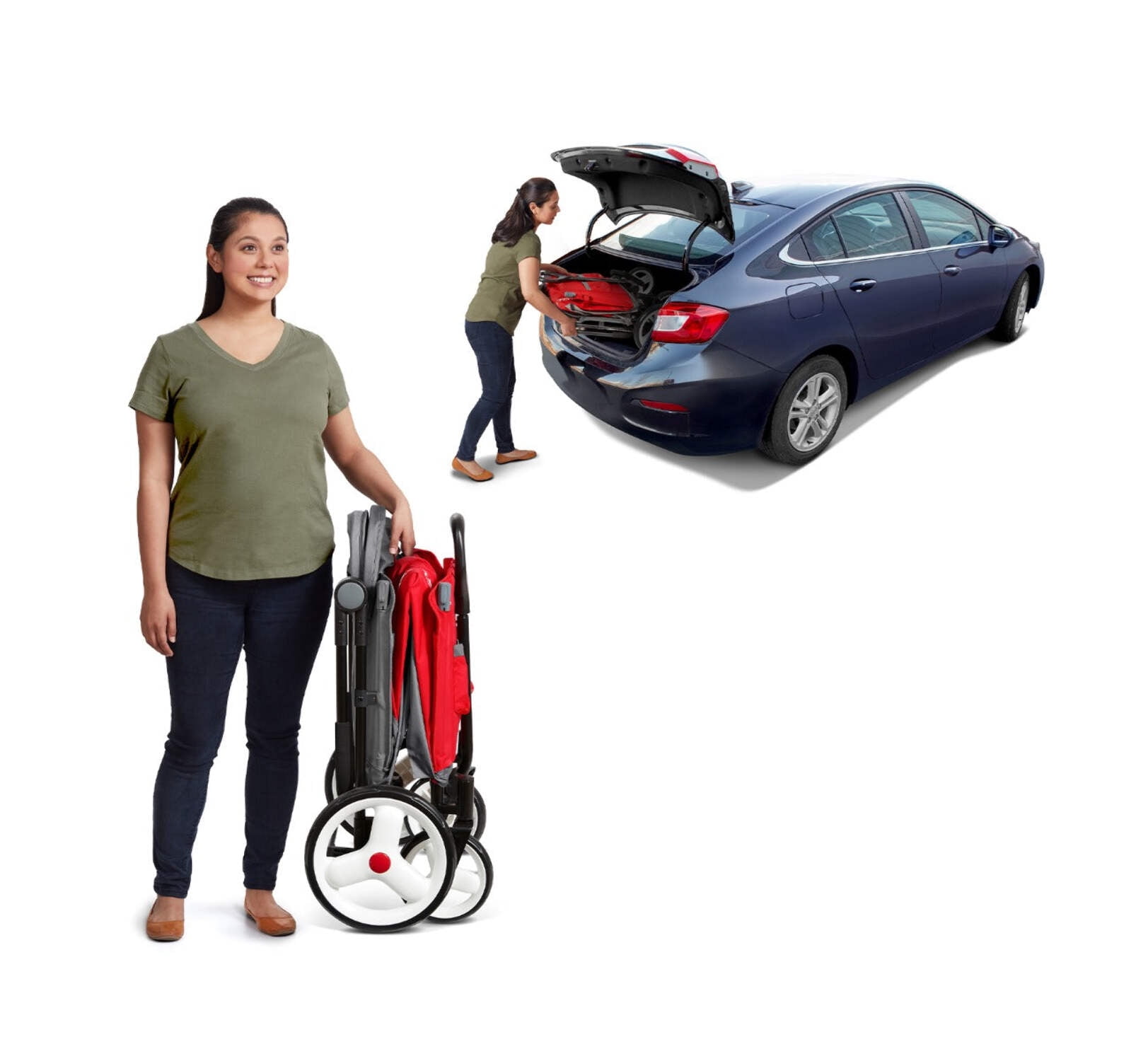 $153.94● Convenient push or pull steering ● One hand fold; folds flat for easy storage ● 5-point safety harnesses and rear brake ● Two adjustable & removable UV protection canopies ● Front caster wheels for nimble steering and large, 12” easy push rear wheels The Discovery Stroll ‘N Wagon® with Canopies brings all of the adventure of a classic wagon into one premium vehicle. This Stroll ‘N Wagon™ has a unique design that allows the optimal steering configuration for two modes: our Never Fall™ wagon pull handle in the front and a fold-away push handlebar on the back. Keep little ones as young as 12 months safe with two 5-point safety harnesses, and rear brake. The reclining seat can be adjusted to the perfect angle for your child. Thoughtfully designed parent features like cup holders and adjustable height handles make this the ideal vehicle for your whole family. The side zips down for stationary bench seating and easy in and out. Large 12” rear wheels are easy to push and provide a smooth ride on any surface, and the front caster wheels allow nimble steering and maneuverability. The UV protection canopies protect your little ones from the sun and can easily be removed and stored in the rear storage pouch when not in use. Maximum weight capacity 120 lbs. For 1+ years.