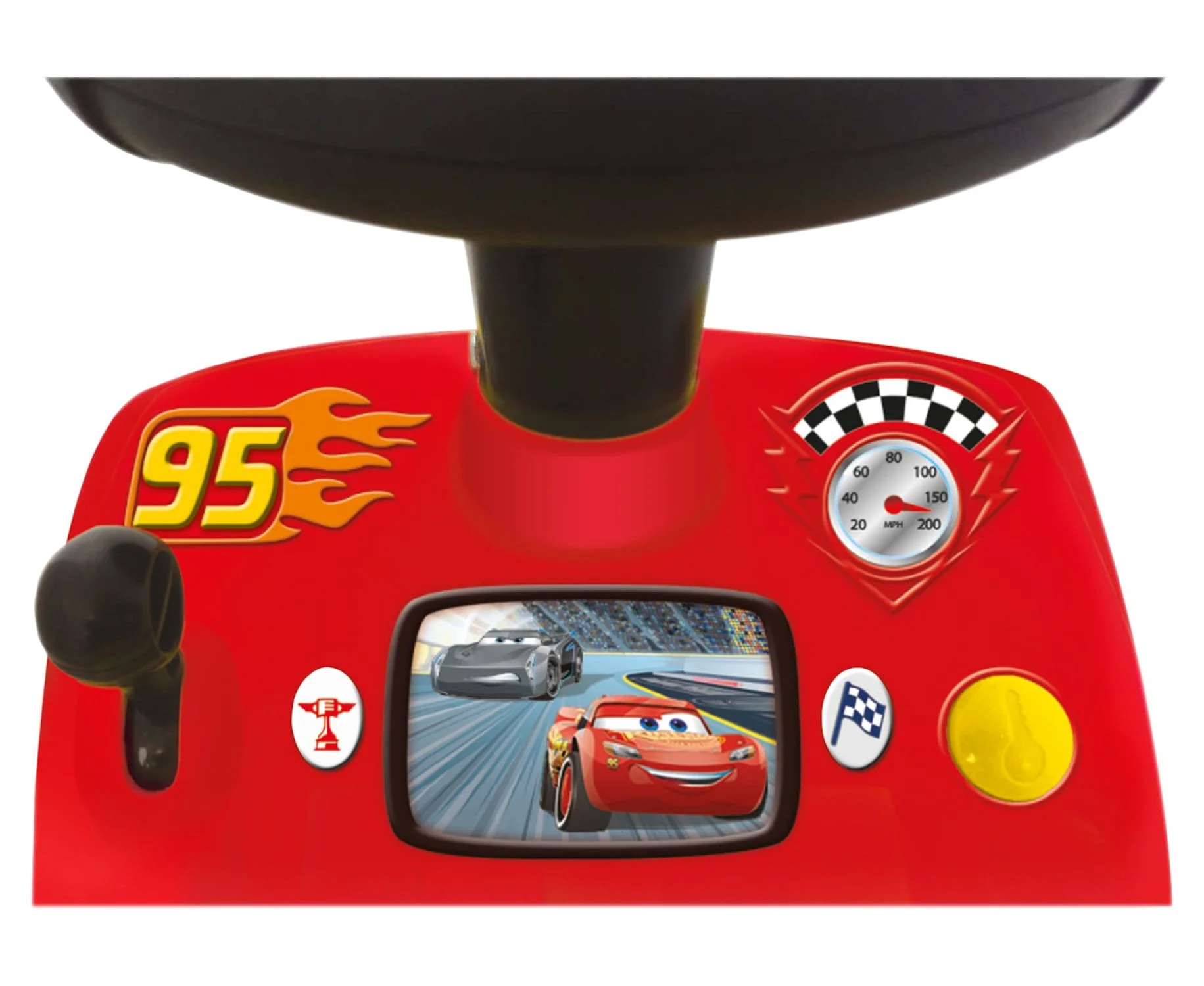 $47.29Take Lightning McQueen out for a spin as he revs up and plays exciting music! Press ignition key for realistic engine sound. Hear rewarding fun sounds and flashing lights. Steer wheel and press to hear accelerator and brakes for hours of driving fun. Safe and durable construction for hours of riding fun. Rev your engines and get ready to roll with Disney-Pixar’s Cars! Suitable for a child 3 years and up.