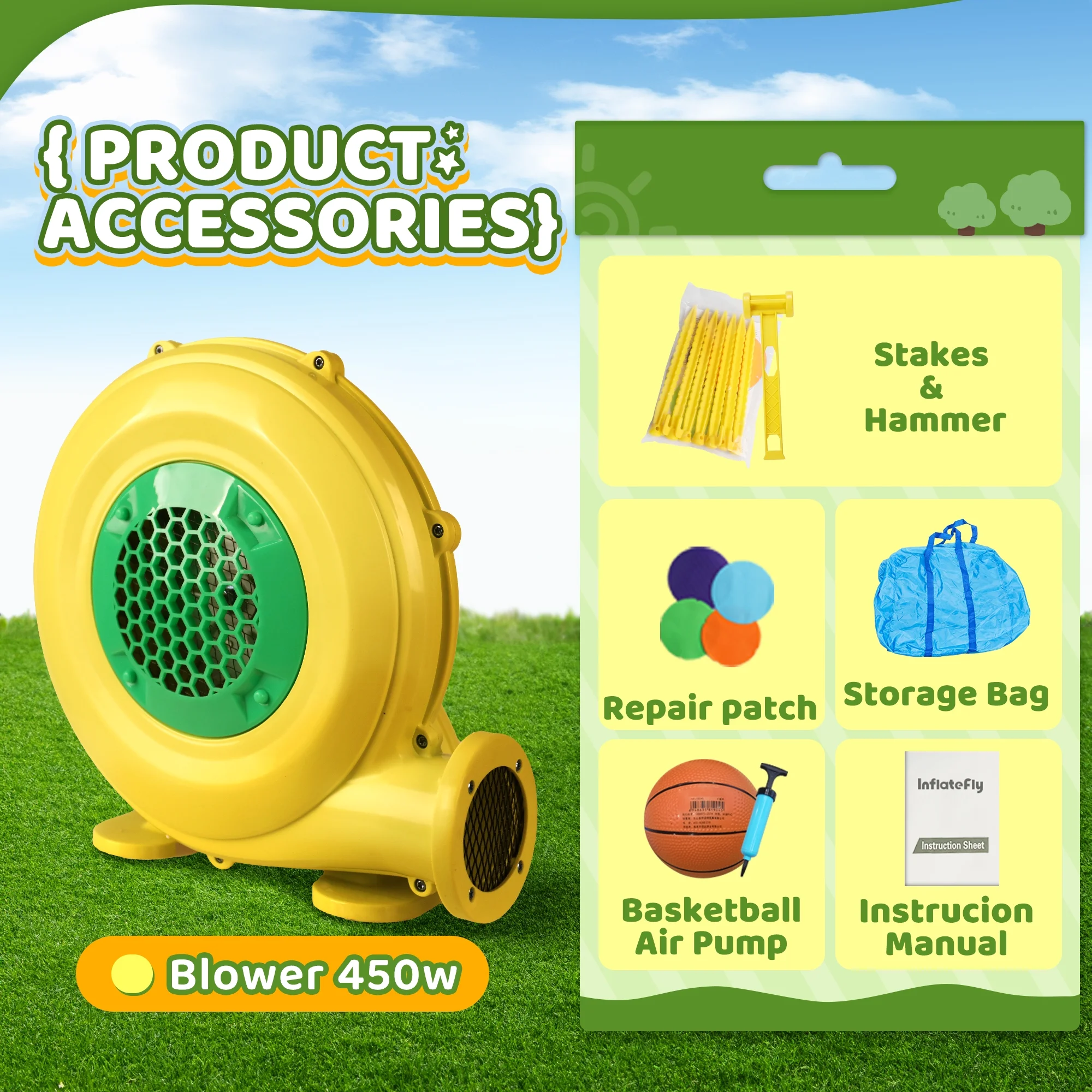 $408.49Original price was: $408.49.$343.99Current price is: $343.99.Doctor Dolphin’s inflatable bounce house has a spacious bounce area of almost five square meters and a double slide that can be used by children both outdoors and indoors! Our outdoor toys are perfect for encouraging outdoor play and exercise. Perfect for summer fun, pool parties, birthdays, and much more! Our fast inflatable children’s playroom has a large bouncing area for up to four (4-6) high jumpers with a maximum weight capacity of 350 lbs. There are also two double slides for your child to experience the fun of sliding. Our inflatable bounce house for kids with dual slides was designed with your child’s safety in mind. It is made of durable, non-toxic oxford fabric and the sides of the bouncer are surrounded by fall-proof netting, so parents can easily supervise and check on their children while they are with them.
