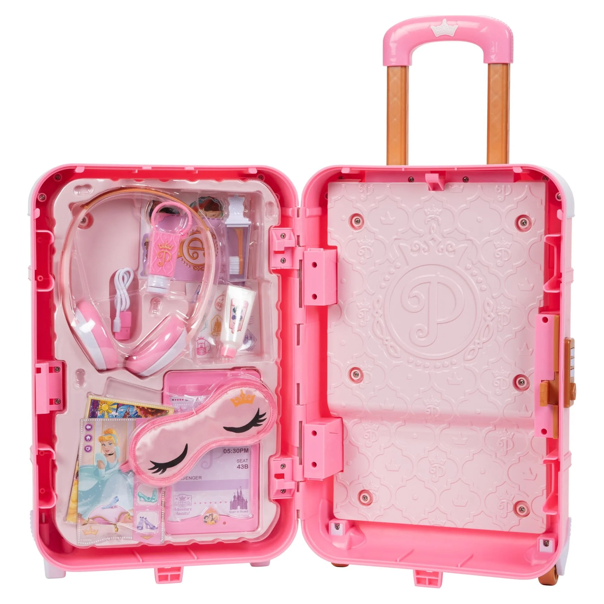 $38.50Original price was: $38.50.$34.37Current price is: $34.37.The Disney Princess Style Collection World Traveler Play Suitcase has everything a princess needs to travel in style! All your travel essentials are covered, and they are stored perfectly in the oh-so-chic and updated play suitcase. Pretend to secure your belongings with the faux combination lock. Stay connected at the airport by plugging in your play tablet, or freshen up before take-off with the play lip balm and hand sanitizer. The real working wheels and retractable handle make sure you always catch your flight! Relax inflight with the play headphones and eye mask. With a passport and ticket in your folio, you’re set to jet on adventures to faraway places!