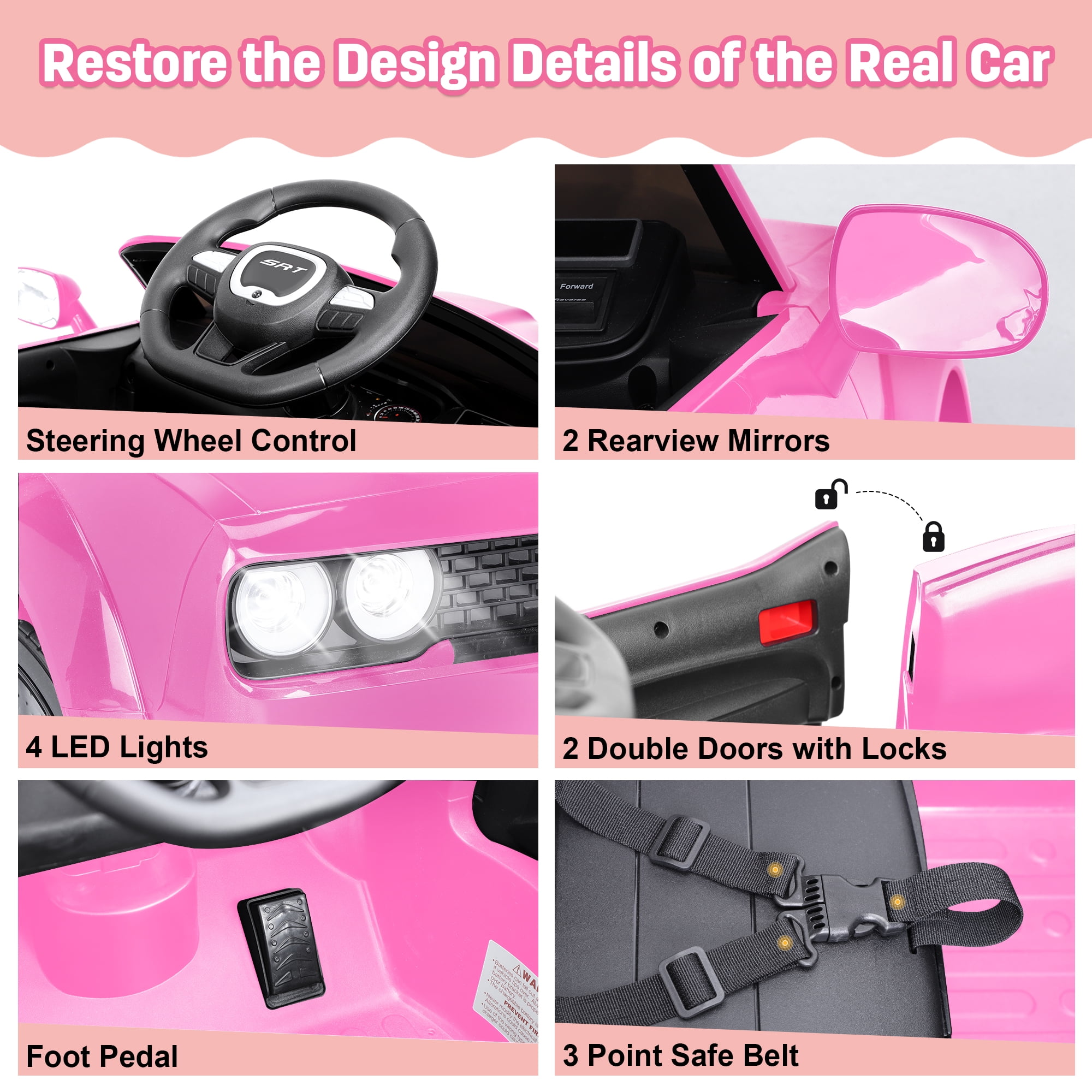 Dodge Challenger SRT Kids Ride on Car,Wisairt 12 V Battery Powered Electric Vehicle w/ Remote Control,Bluetooth,LED Lights(Pink)