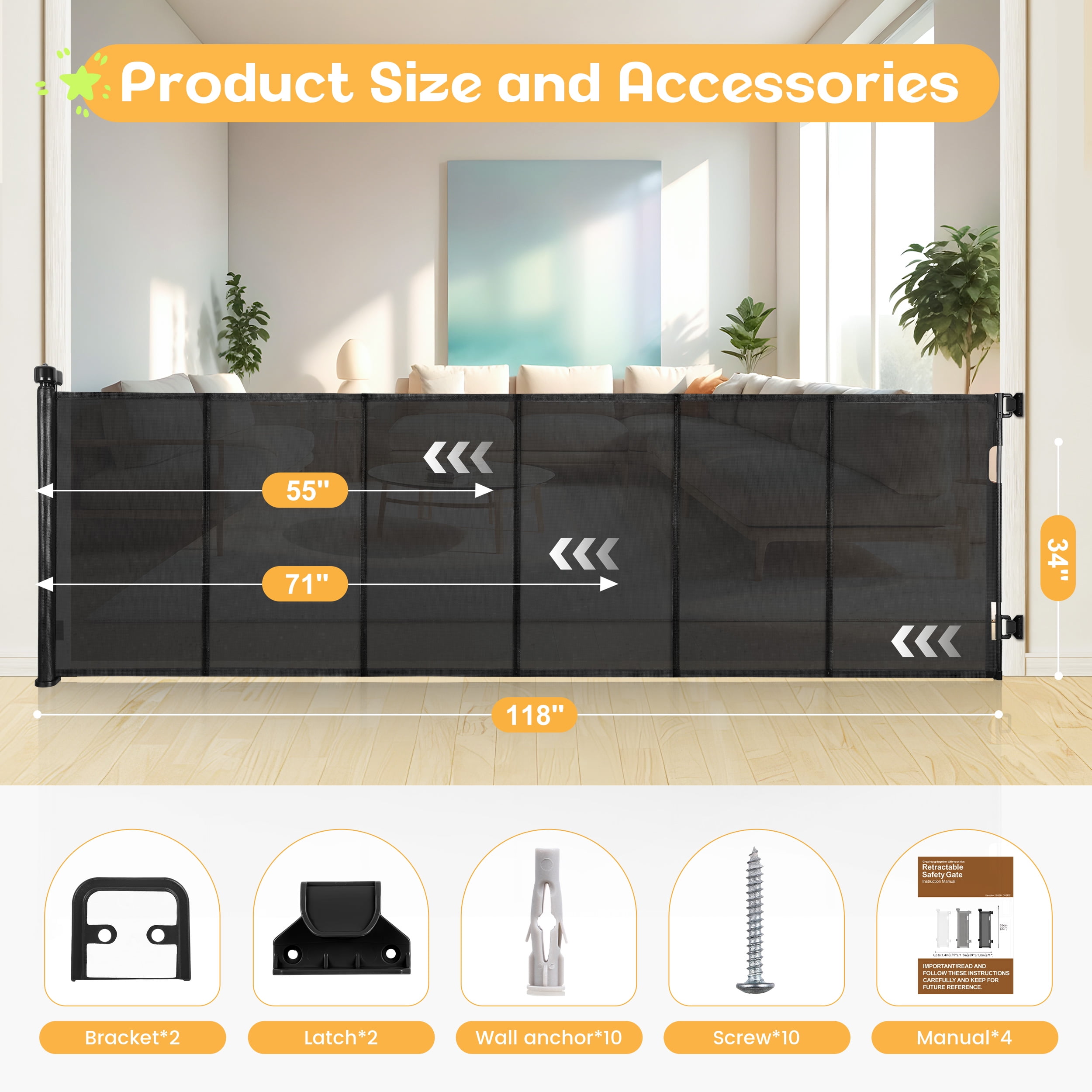 $61.91Doulami 118″ Retractable Baby Gate Extra Wide Safety Gates Child Gate for Indoor/Outdoor, Black ❤️Welcome to Doulami Store! ❤️Our versatile retractable baby gate, designed to seamlessly blend into your home while providing top-notch safety. Its sleek design and adjustable width make it perfect for various indoor and outdoor spaces, from doorways to staircases. With a user-friendly one-hand operation, you can easily open or close the gate even while carrying your child. Plus, its lockable mechanism ensures extra security, giving you peace of mind. Say goodbye to bulky metal gates that clutter your space—our retractable baby gate offers a sleek solution without compromising safety.