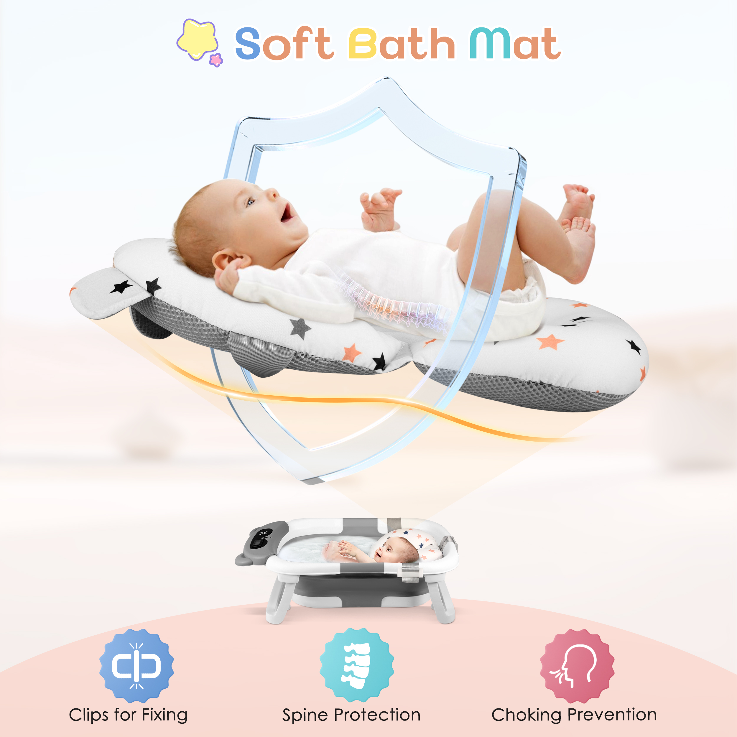 Doulami Collapsible Baby Bathtub for Infants Baby Tubs for Newborns with Cushion and Thermometer, 0-36 Month(Gray)