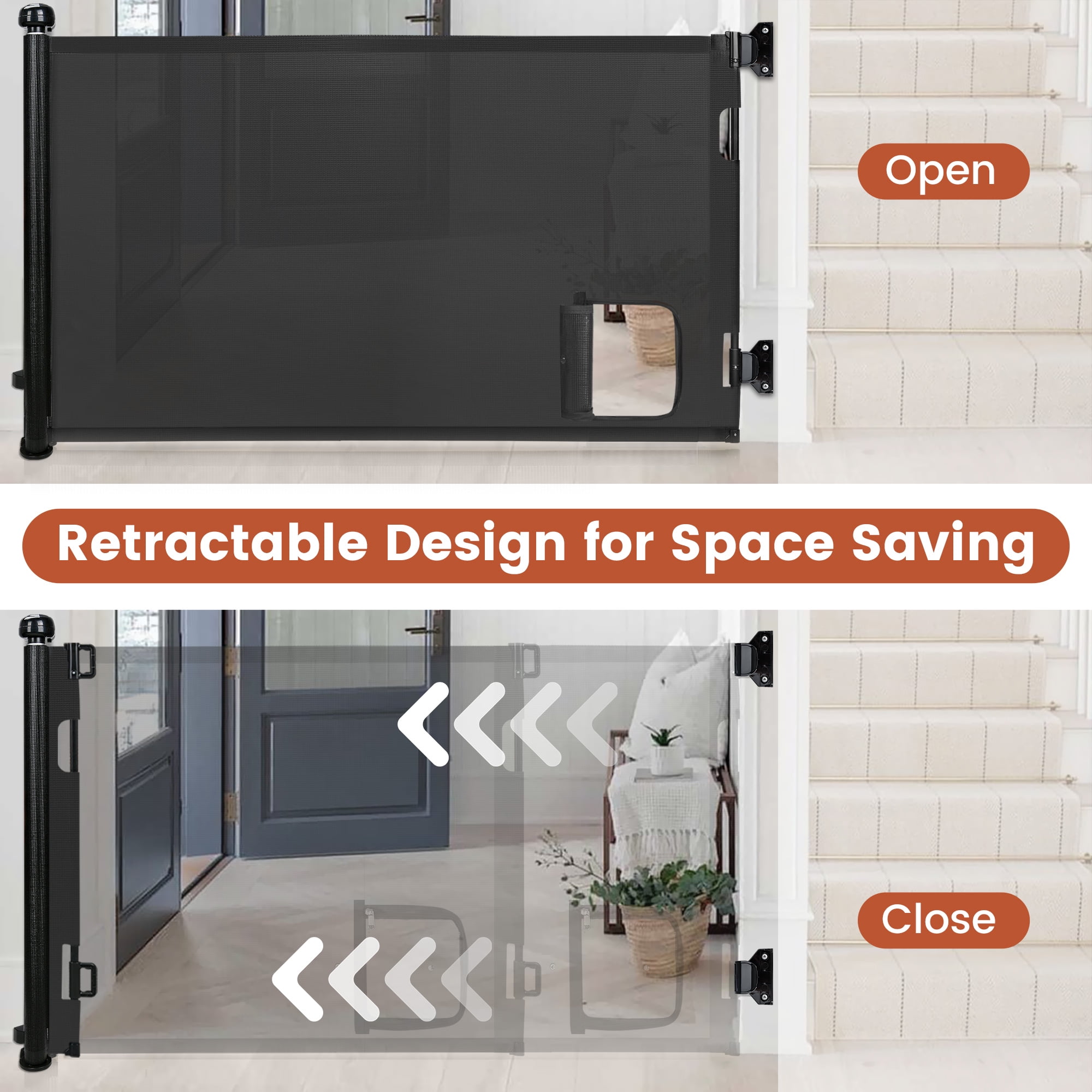 Doulami Retractable Baby Gates for Doorway Stairs Safety Gate with Pet Door 34″ Tall 81″ Extra Wide