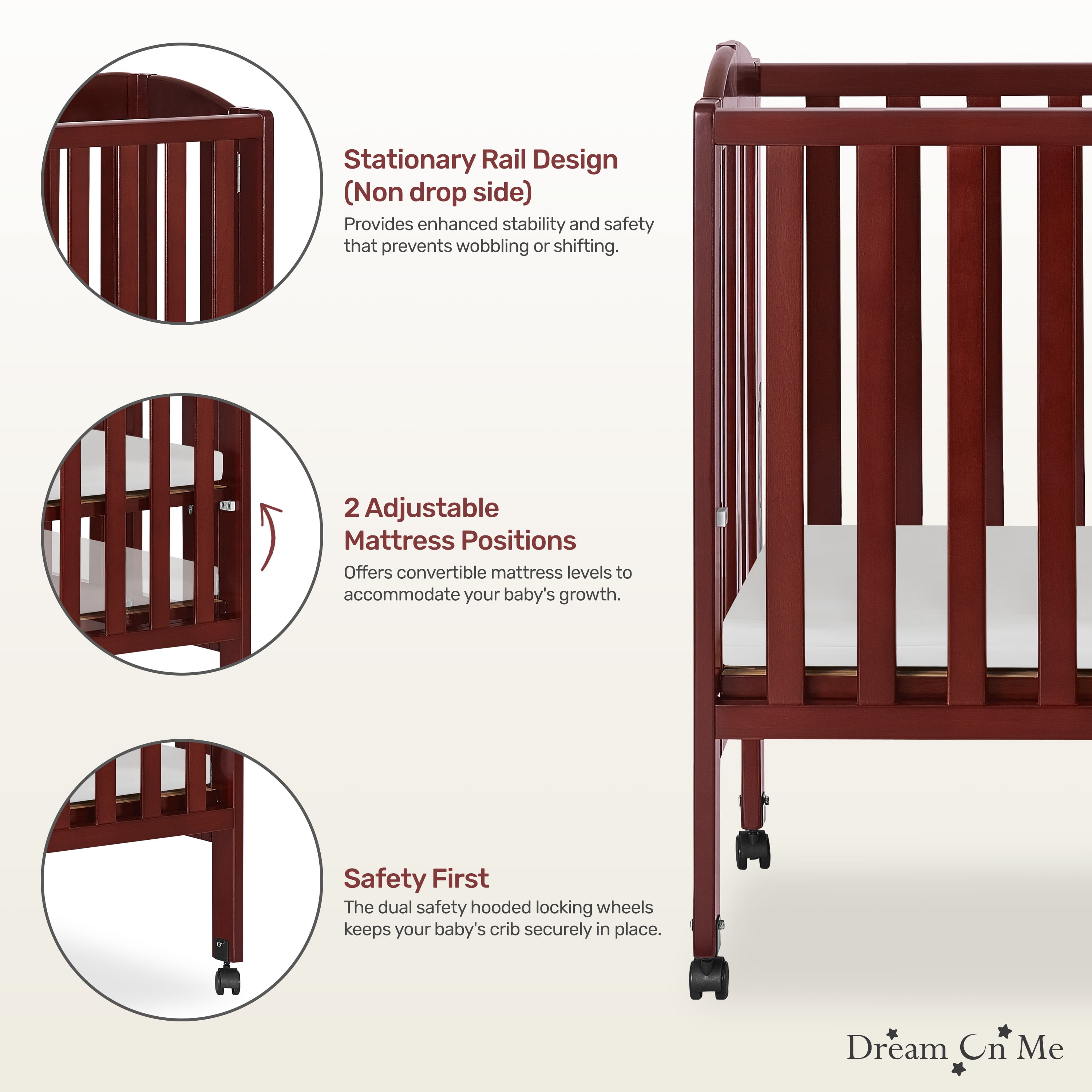 Dream On Me 2-in-1 Folding Portable Mini Crib, Cherry