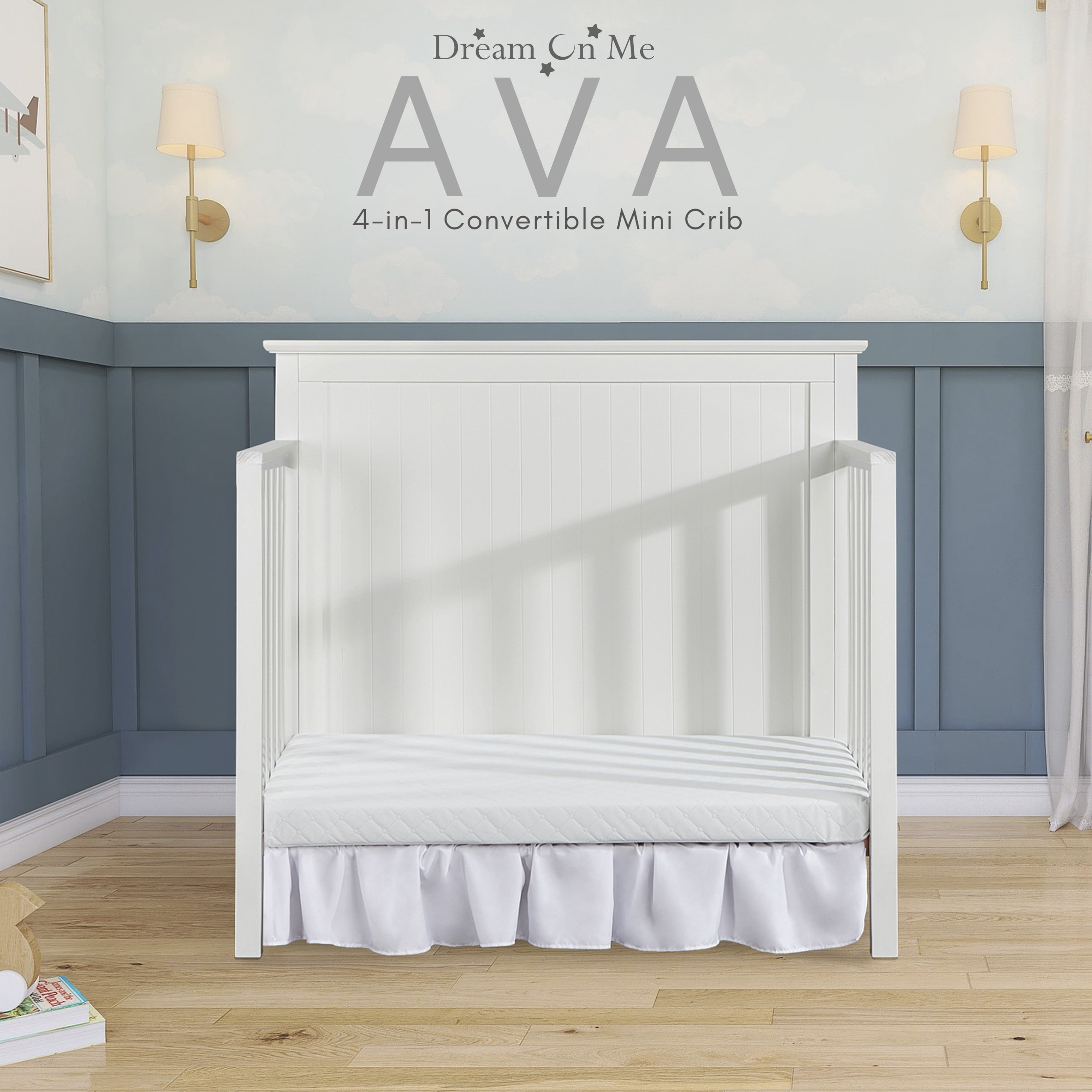 Dream On Me Ava 4-in-1 Convertible Mini Crib, White