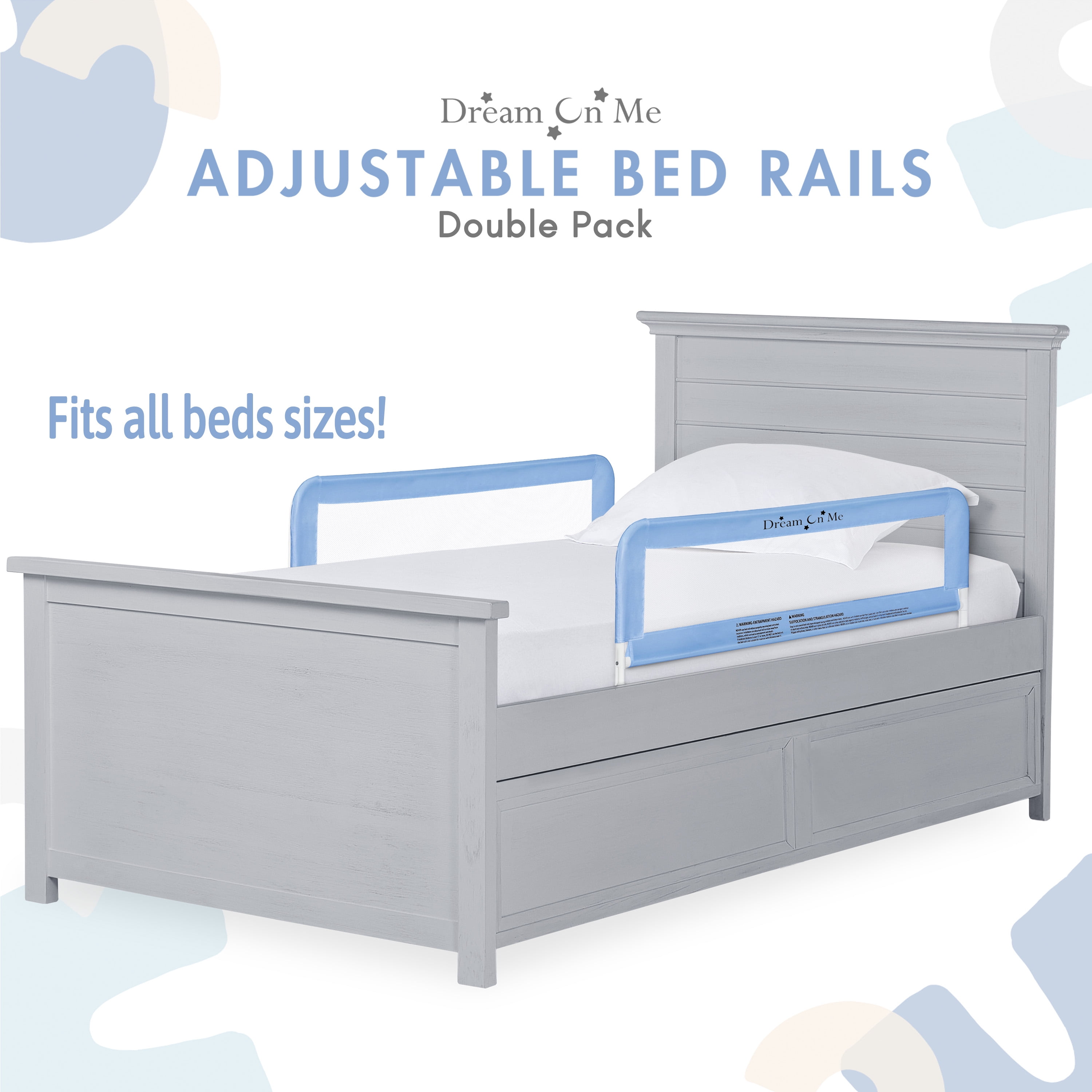 Dream On Me Adjustable Mesh Bed Rail, Two Height Levels, No Assembly required, Compatible with Adult Twin Size Beds, Equipped with Guard Gap, Durable Nylon Fabric Mesh, Blue (Pack of 2)
