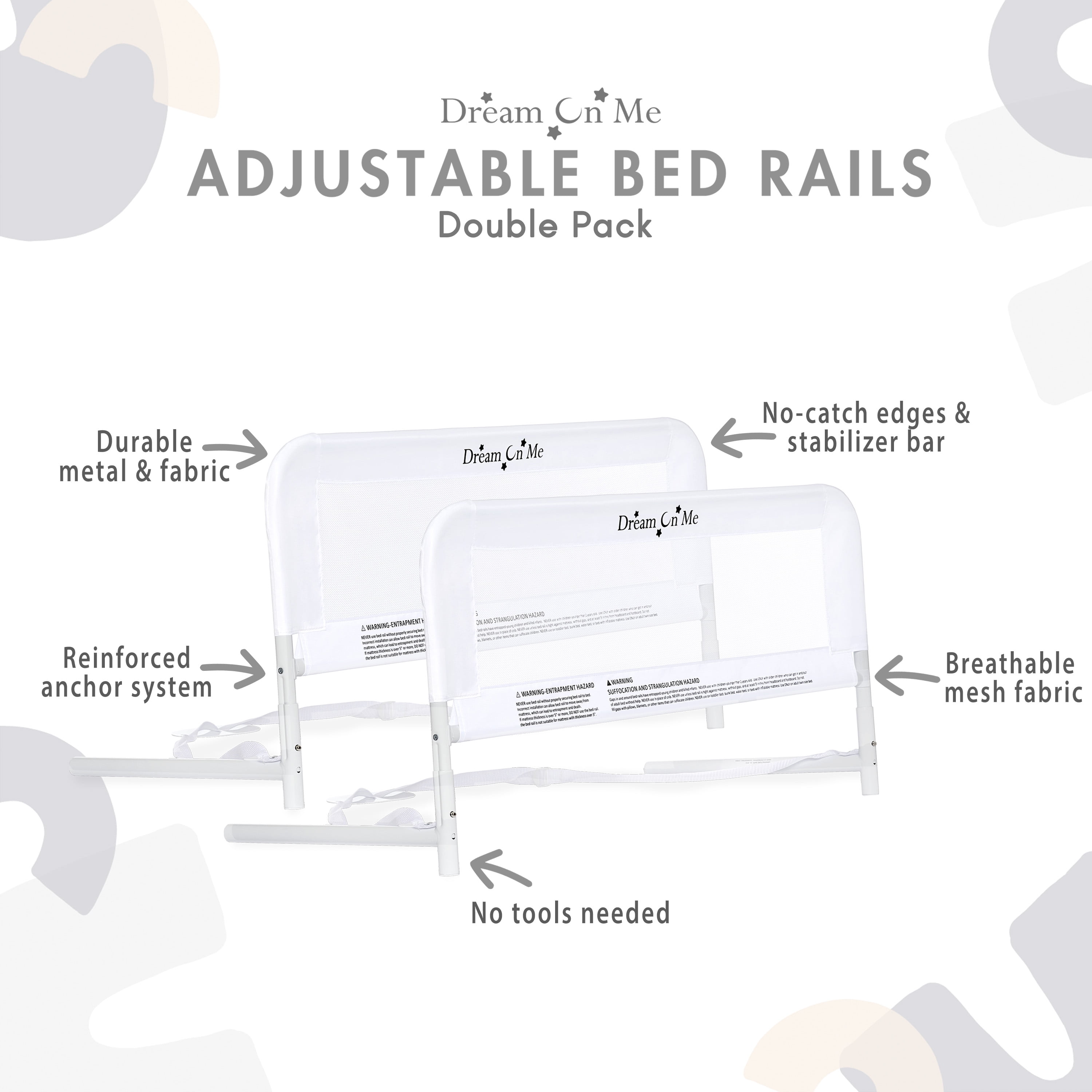 Dream On Me Adjustable Mesh Bed Rail in White, Two Height Levels, Breathable & Durable Fabric, Lightweight and Portable Bed Rail for Toddlers