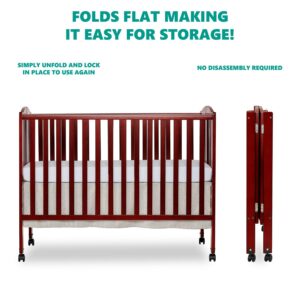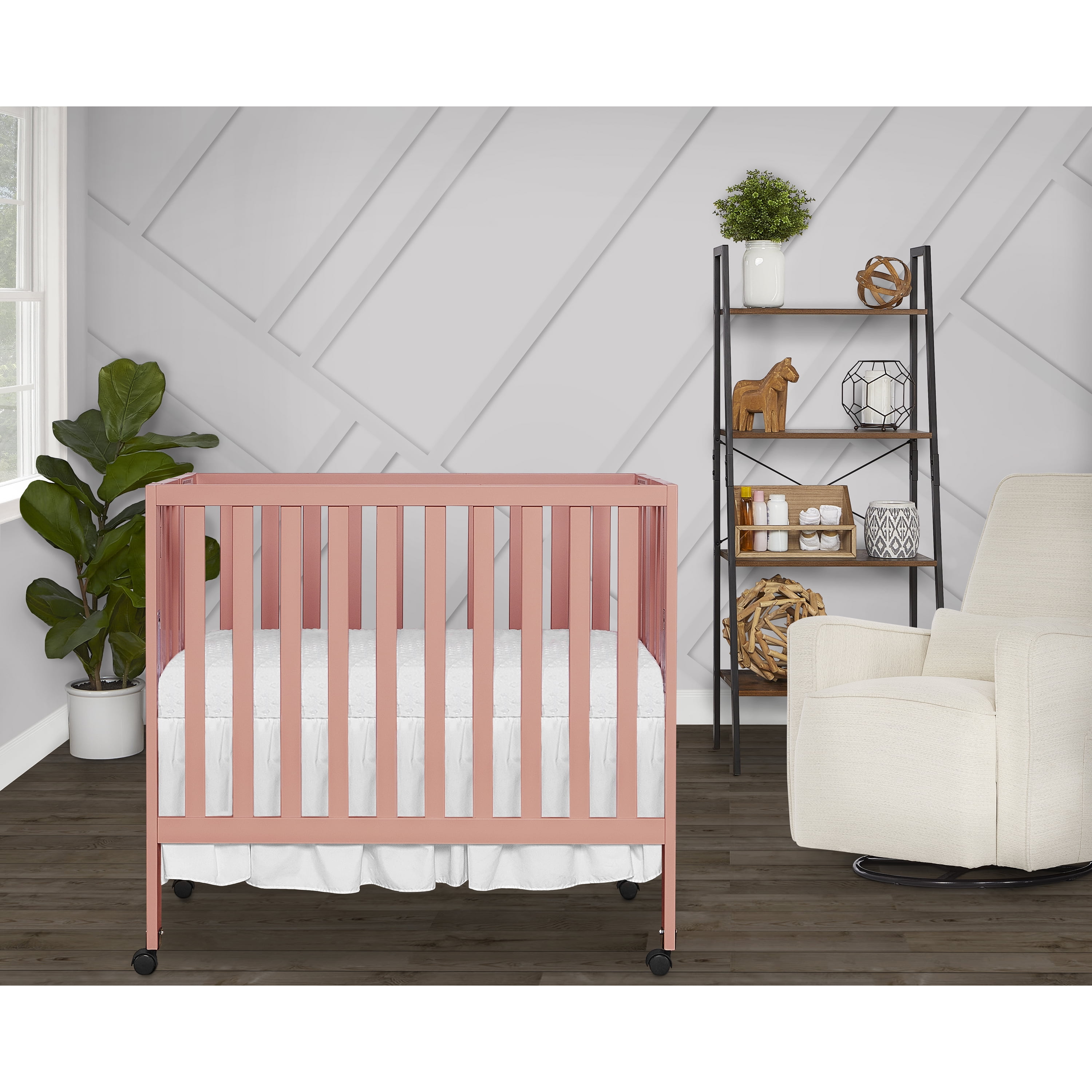 Dream On Me Jett Non-Full Size Folding Crib I Removable Wheels I Modern Nursey I Adjustable Mattress Support I Patent Folding System I Included 1.5” Mattress In Pink