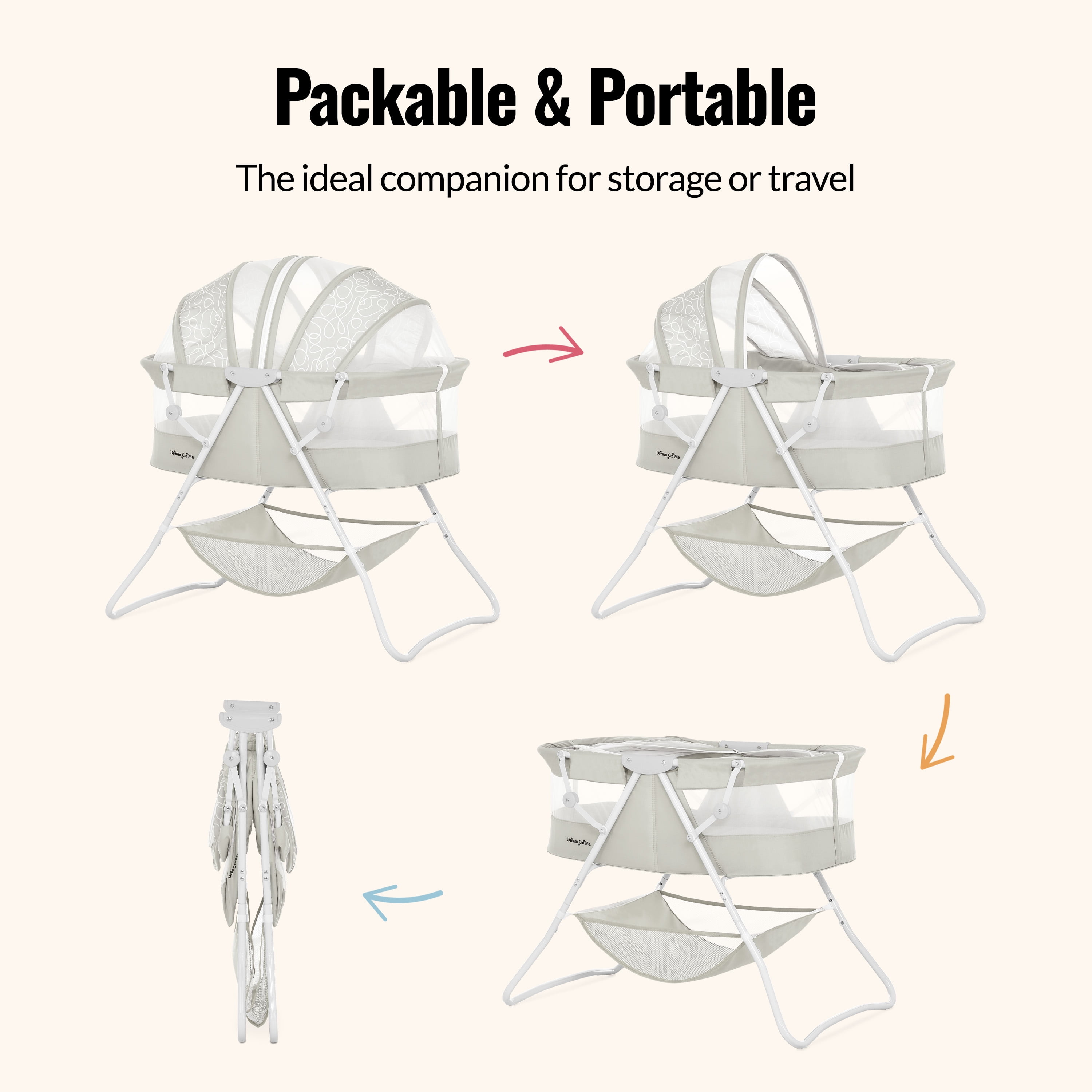 $55.95The Dream On Me Karley Bassinet is made of a polyester foam fabric and features a double canopy and sleeping pad. Lightweight and versatile, this Bassinet can easily be moved from room to room and even outdoors! This Bassinet requires light assembly. The Dream On Me Karley Bassinet is recommended for newborns up to 25 lbs.