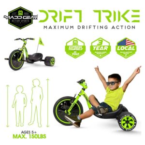 Drift Trike for Kids Ages 5+ with Adjustable Seat and 16″ Front Wheel – Madd Gear