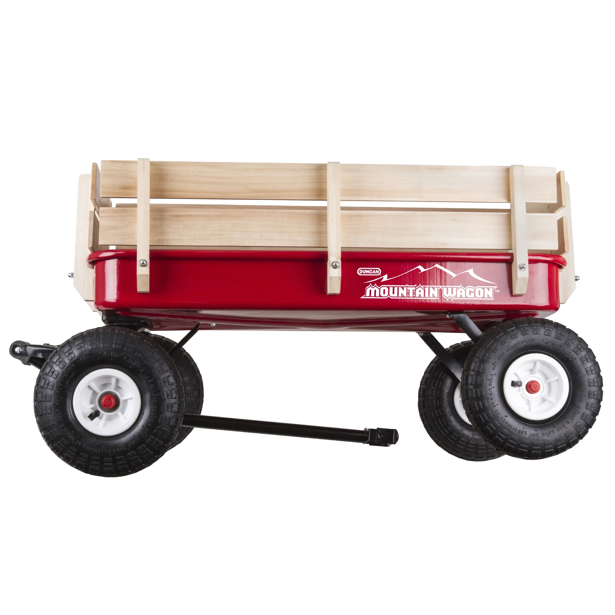 $154.79More than your average wagon, Duncan Toys’ Mountain Wagon is loved by both young and old alike! Equipped with four oversized all-terrain tires, rust-proof ball bearings, and a wide wheelbase, this tough transporter is fully equipped for wherever your adventure may lead! Pull large heavy loads with ease thanks to Mountain Wagon’s 4″ wide handle and avoid “jackknifing” around turns with a wider wheelbase than most wagons on the market. The Mountain Wagon’s rolled seamless edges guard against cuts and scratches in and out of the wagon. The extra-sturdy, thick & beveled, wooden side panels provide for plenty of support. This wagon is quickly becoming the heavy hauler’s choice for work and play!