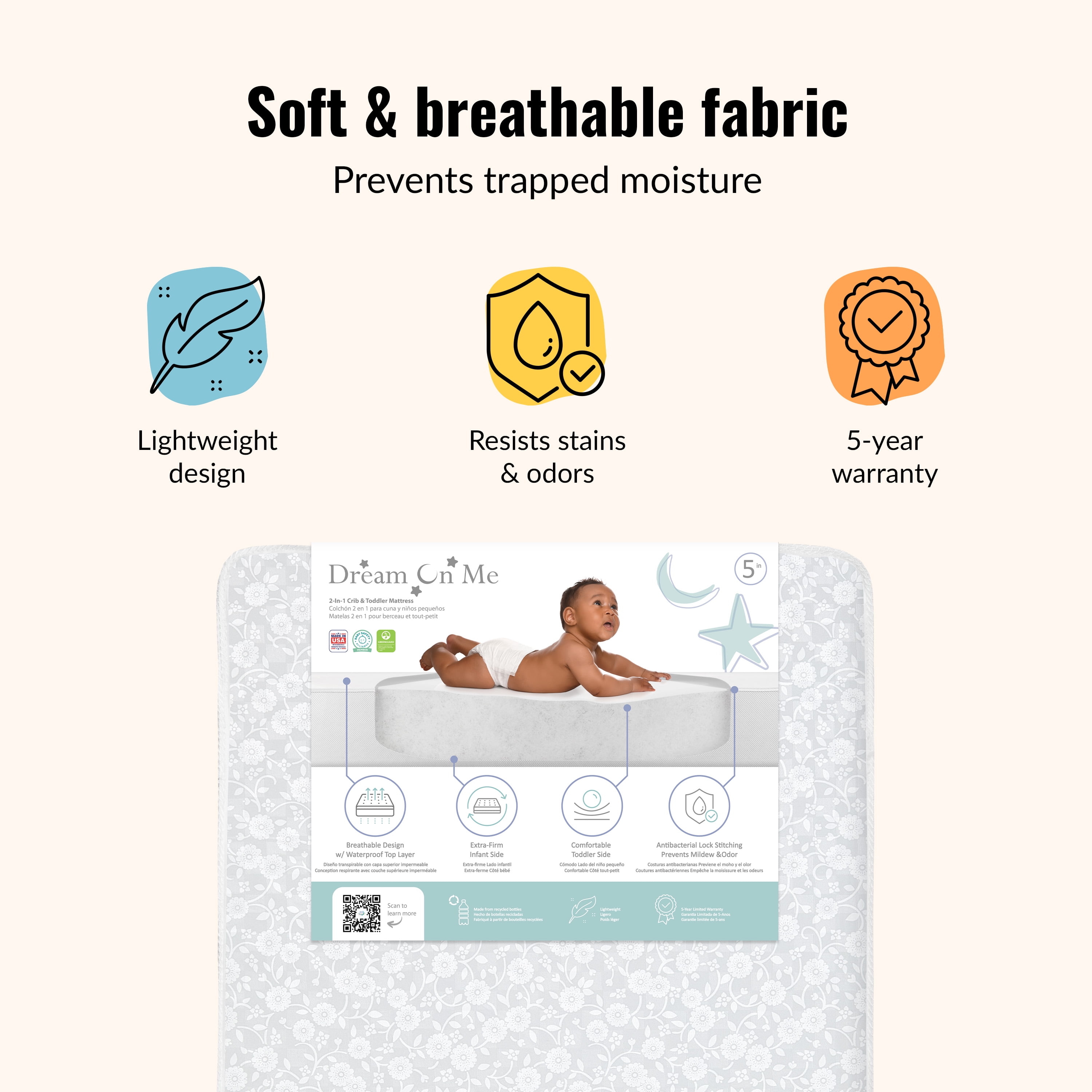 Dream on Me, Breathable Orthopedic Extra Firm Crib & Toddler Mattress, Reversible Design