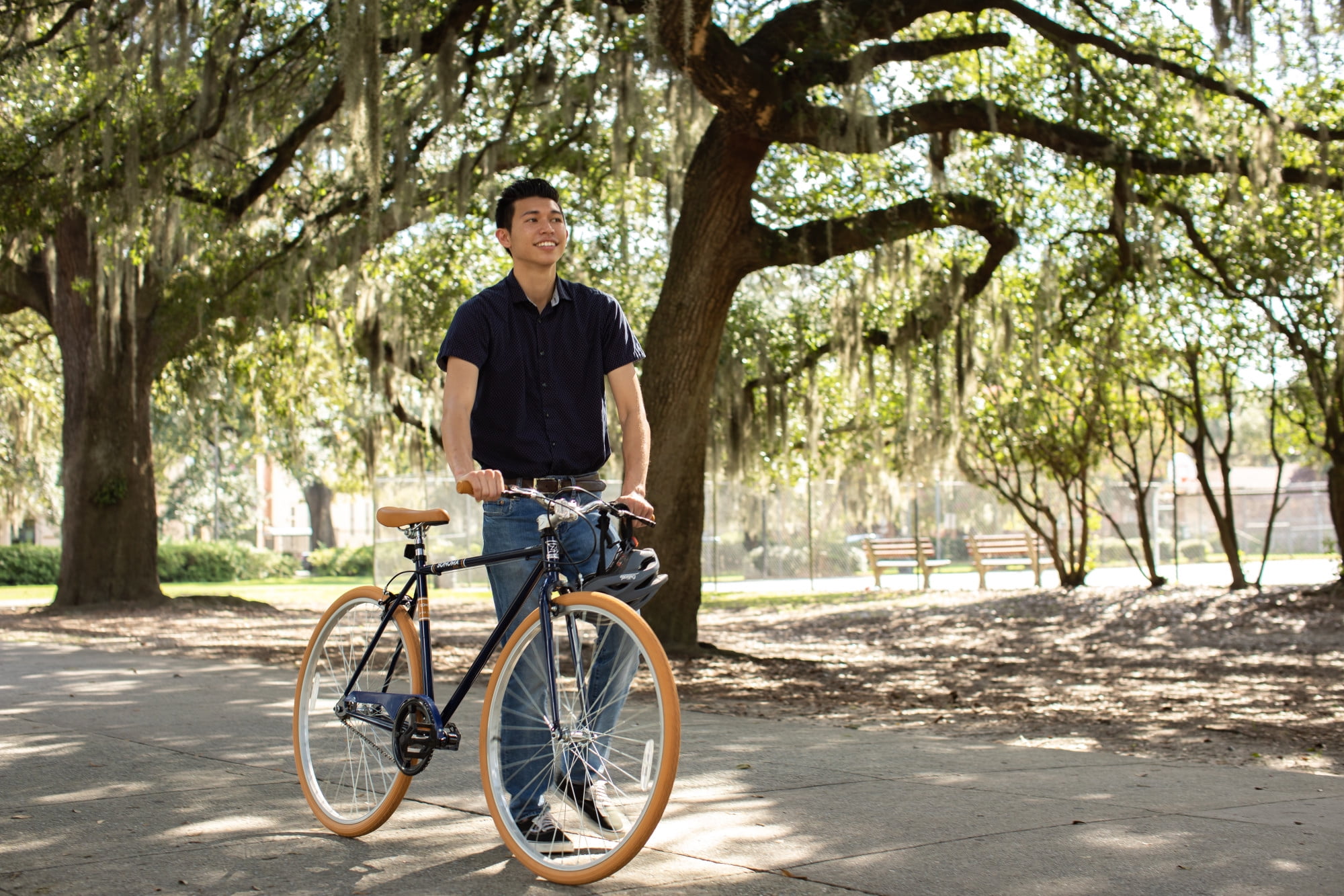$163.39Show off the stylish and smooth Dynacraft Sonoma 700C Men’s City Bike as you ride through the heart of the city. This sleek city bike with a dark blue high gloss paint finish is perfect for riding to work or casually cursing around your neighborhood. Custom gum tires in tan, and matching tan handlebar grips and saddle, add to the unique and stylish design of the bike. The lightweight alloy rims make maneuvering smooth and easy. A threadless four-bolt stem and Kraton rubber grips give the bike a more elegant look while also enhancing functionality. The Dynacraft Sonoma 700C Men’s City Bike is meant for great rides in great places.