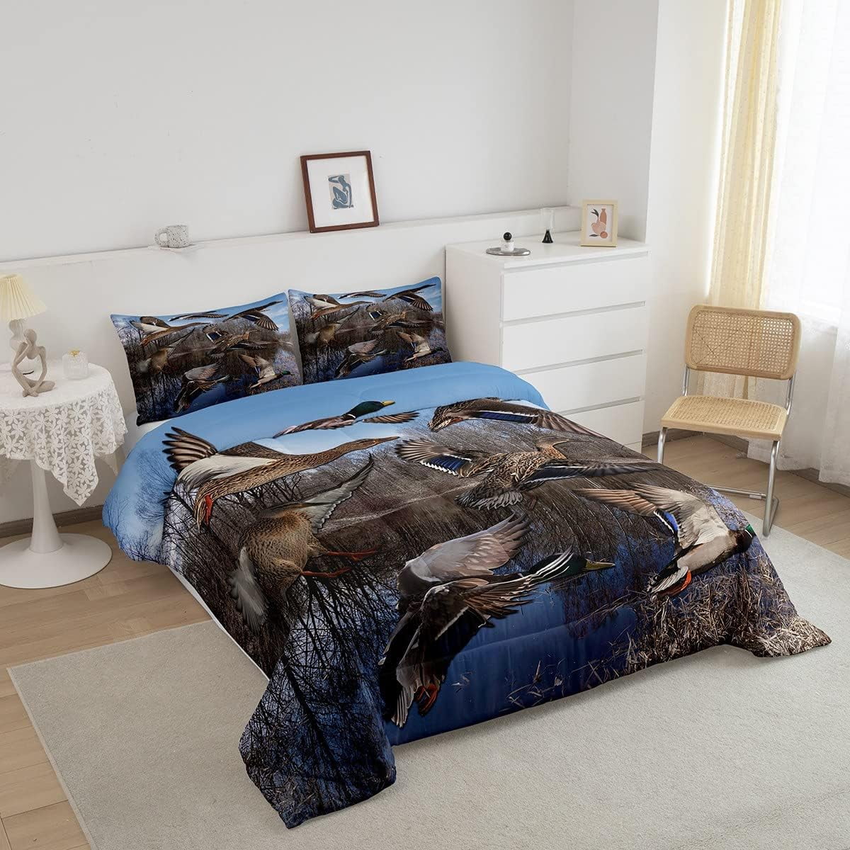Erosebridal Mallard Duck Duvet Insert Duck Hunting Themed Comforter Set Teens Adults Mallard Duck Bird Printed Bedding Set Rustic Natural Lake Scenery Quilt with 1 Pillowcase,Twin