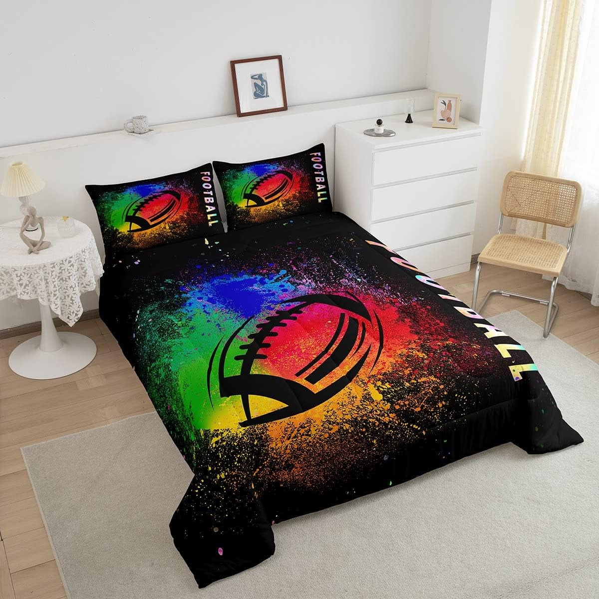 Erosebridal Football Comforter Sets ,Hand Drawn American Football Duvet Insert,Colorful Tie Dyed Ball Game Bedding Set Twin,Neon Sports Down Comforter with 1 Pillowcase