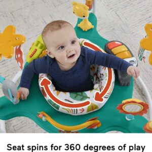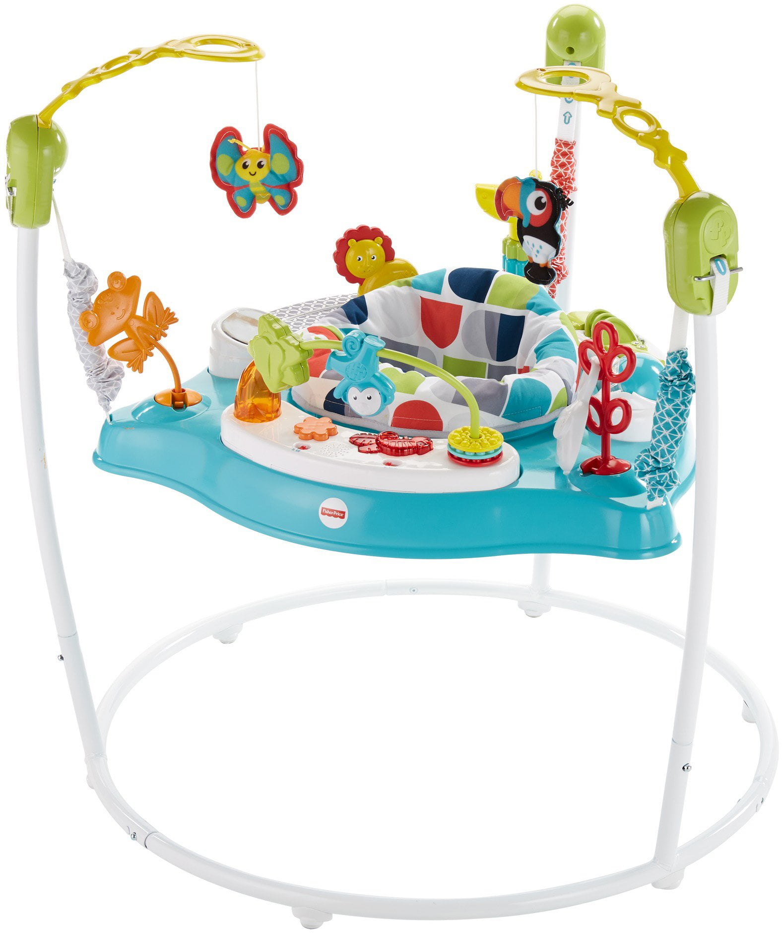 $77.39There’s so much for little ones to discover with their animal pals on this Fisher-Price Jumperoo: music, lights and exciting sounds reward their every jump! A rotating seat gives your baby 360-degree access to toys, activities, and animals, including soft monkeys overhead, spinners, clickers, a bead bar, mirror and so much more. With three height adjustments, the reaching, grasping, and jumping fun can continue even as your tiny explorer grows! Where development comes into play Gross Motor: Jumping, balancing on those tiny toes, and reaching for all the toys and activities helps get your baby’s gross motor skills going and growing! Sensory: Bright colors, lights, and a variety of sounds and textures help stimulate your baby’s visual, auditory and tactile senses. Curiosity & Wonder: There’s so much for your little explorer to discover from the animal pals ‘flying’ above to their own sweet face in the mirror below! Use only with a child who can hold head up unassisted and who is not able to walk or climb out of product. New.