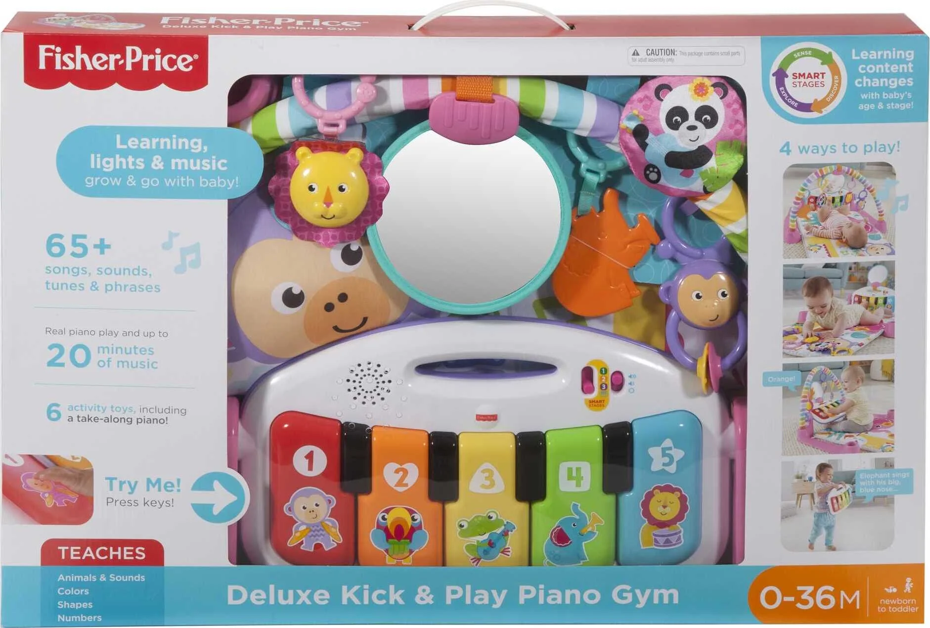 $40.38Kick play time up a notch with the Fisher-Price Deluxe Kick & Play Piano Gym, which has five light-up piano keys, a repositionable toy arch, and four musical settings that keep your little one rocking out for years! As your baby grows from lay and play to tummy time to sitting up at the piano, you can change up the music and learning, too! Smart Stages technology lets you change the learning content to best fit your baby’s age and stage, while real piano notes encourage your little Mozart to create a tune of their own! You can even detach the keyboard for musical fun on the go!