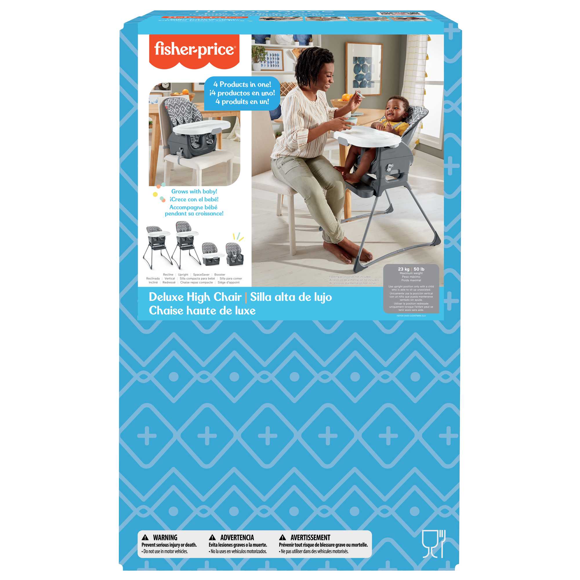 Fisher-Price Deluxe High Chair Adjustable Infant to Toddler Portable Booster Seat, Gray Tribal