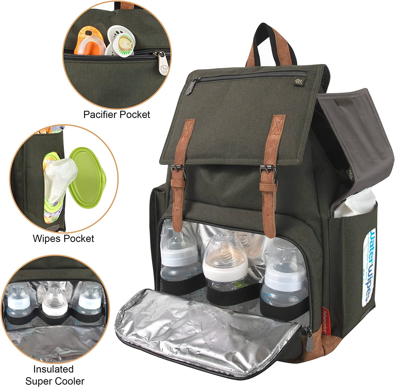 Fisher-Price Fastfinder Baby Essentials Diaper Travel Bag Backpack with Changing Pad, Insulated Bottle Pocket, Pacifier Pouch, Wipes Compartment & Stroller Hooks in Extra Large Unisex Hunter Green