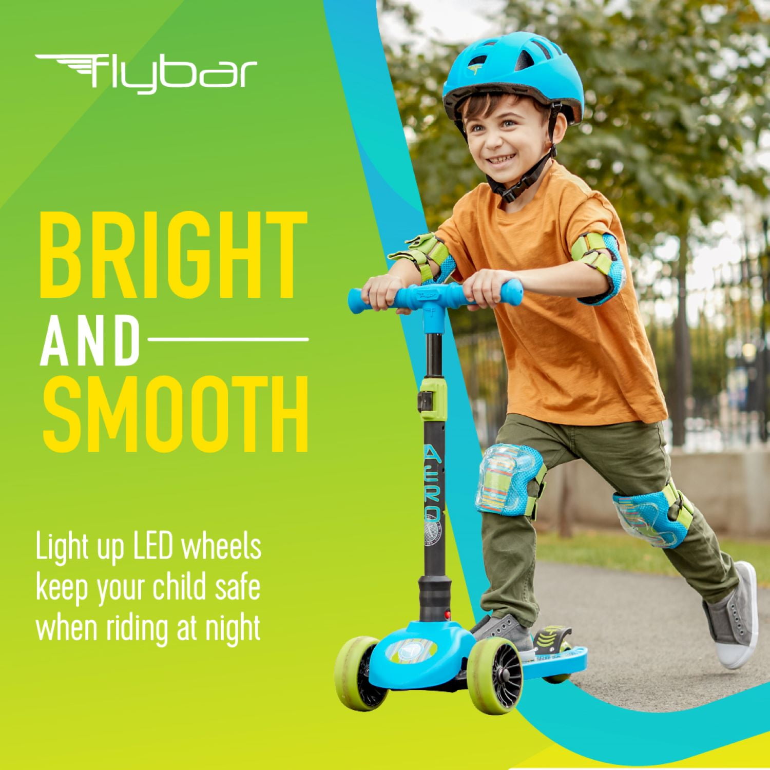 Flybar Aero 3 Wheel LED Kick Scooter for Boys and Girls, Ages 3+, Adjustable Handles, Blue