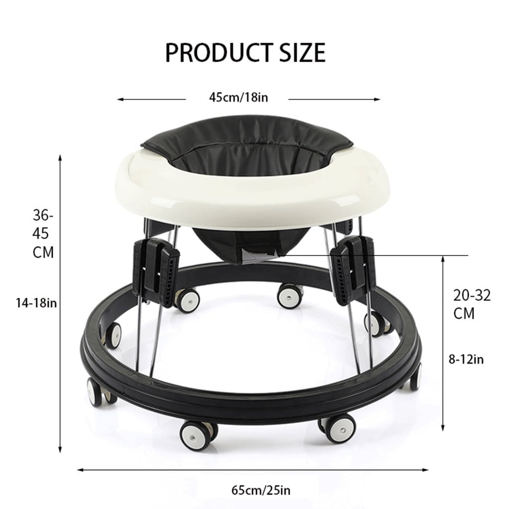 Foldable Baby Walker For Boys Girls Activity Center With Mute Wheels Anti-Rollover Adjustable 9 Height For Toddler Babies 6-18Months(Black)