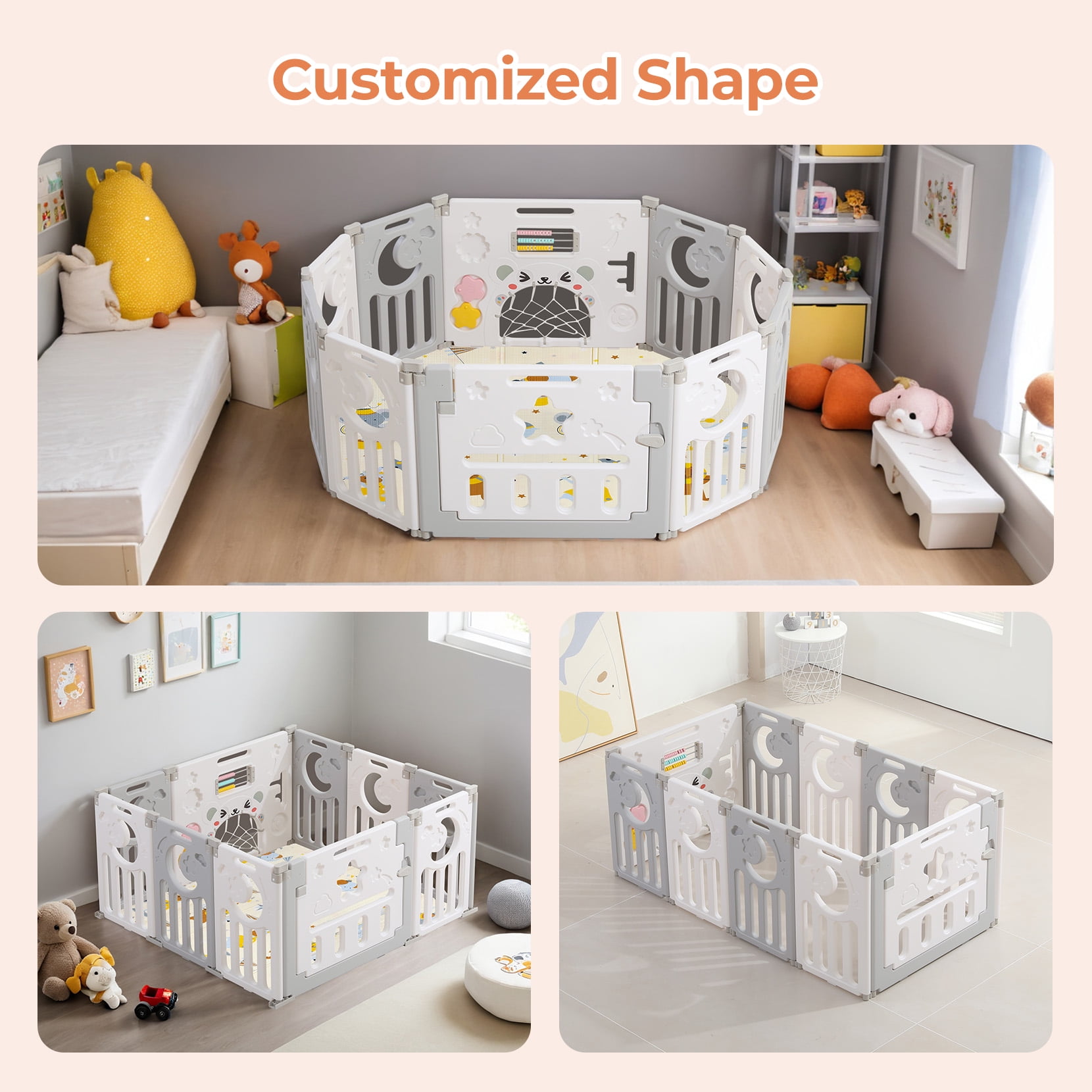 Foldable Baby Playpen,Kids 10 Panel Play Pen for Babies and Toddlers,13.75 Sq.ft Play Yard,Custom Shape Safety,Gray