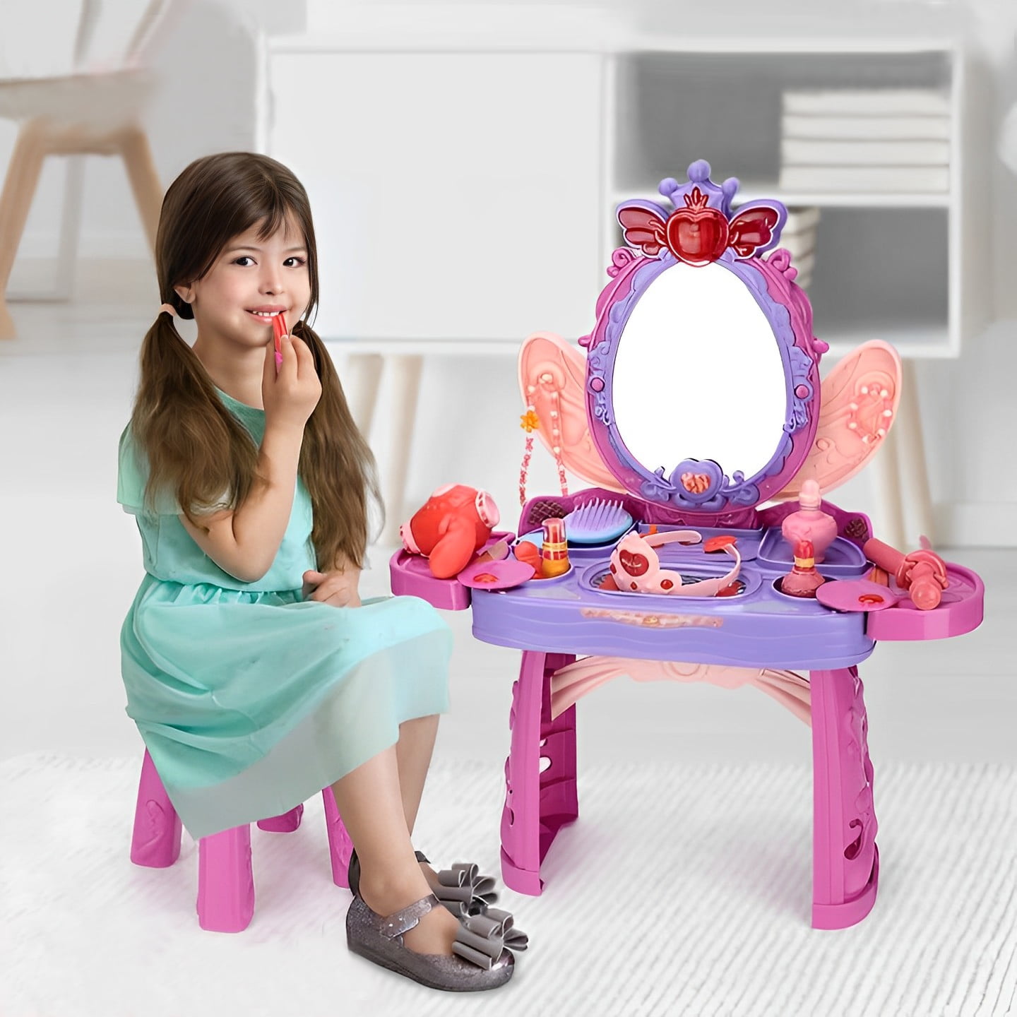 $39.55This beautifully designed children’s vanity table is sure to capture the heart of every little girl who dreams of being a princess! It comes with a mirror, a small stool, and various pretend accessories like a hairdryer and a straightening iron. The unique elf ear design allows for convenient storage of small accessories. Plus, the enchanting sensor lights and music make kids feel like they’ve stepped into a fairytale world! With this vanity table, your little one can let her imagination soar as she gets ready for royal adventures. It’s not just a toy, but a magical gateway to endless hours of creative play. Give your child the gift of princess-like transformation and watch her eyes light up with joy!