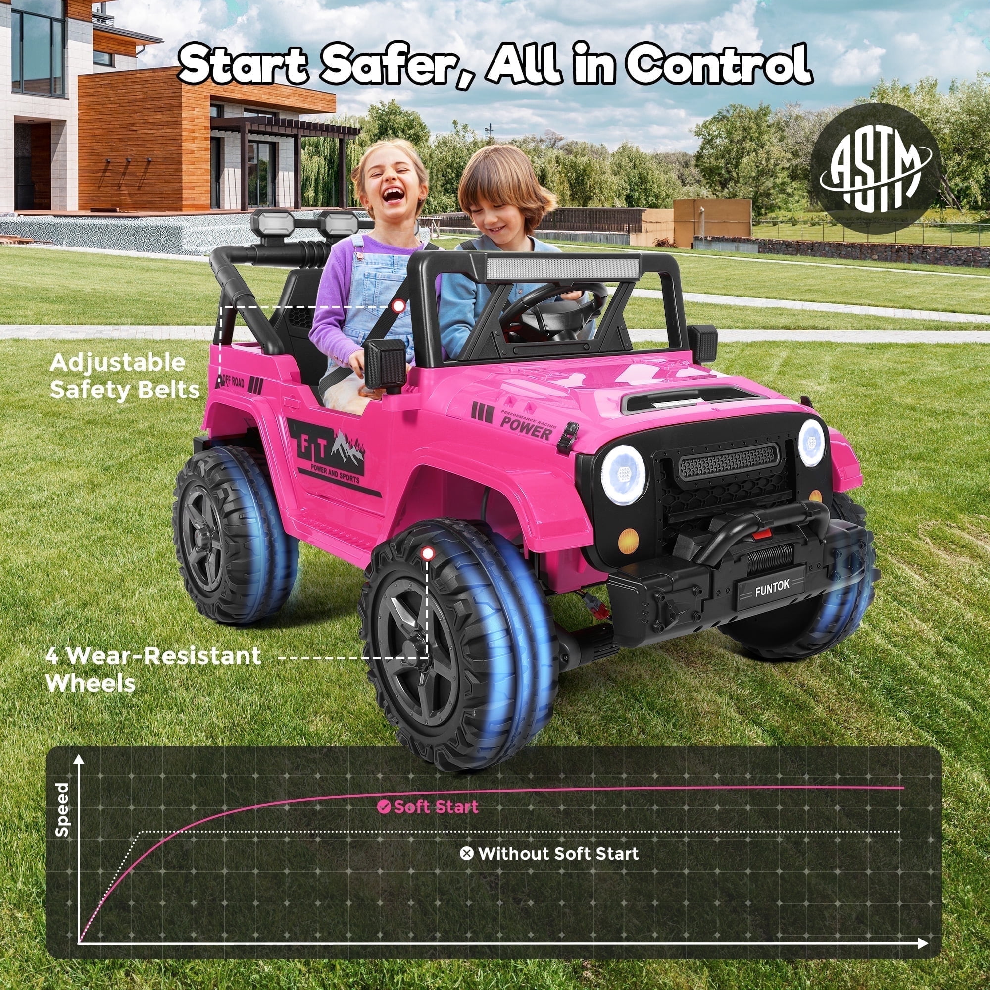 FUNTOK 24 Volt 2 Seater Kids Ride on Toys w/ 20 ” Large Seat, 4 x 200W Motor Electric Vehicle Car, 4WD/2WD Switchable Battery Powered Ride on Truck, 3 Speeds with Remote Control & LED Lights, Pink