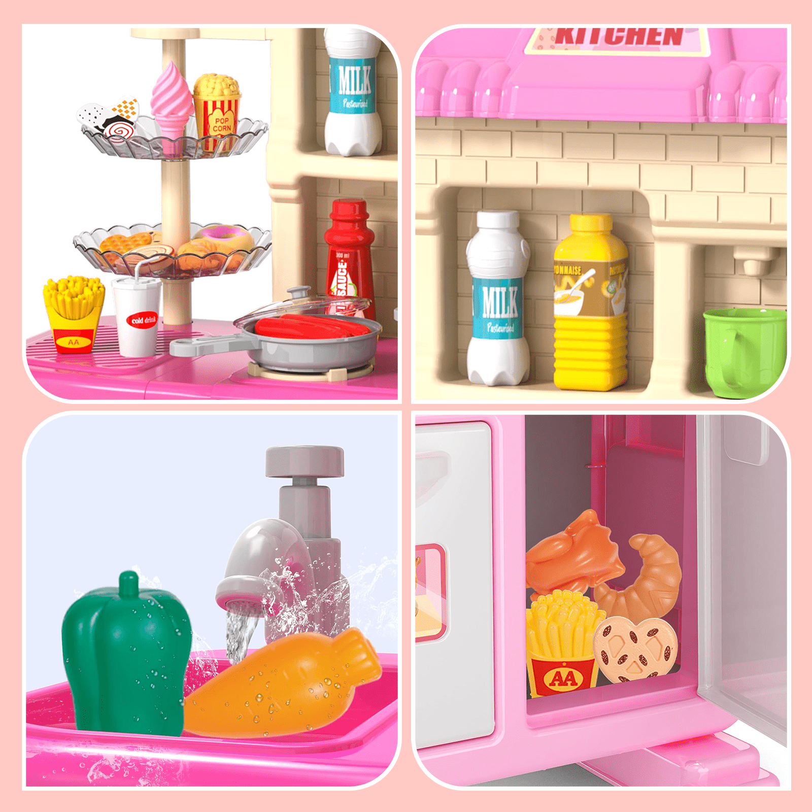 Freecat Play Kitchen Toy Set for Toddlers, Creativity and Learning Toys, Pretend Play Food Set Kitchen Accessories Christmas Birthday Gift Toys for Kids Boys Girls 3 4 5 6+(Pink Toys)