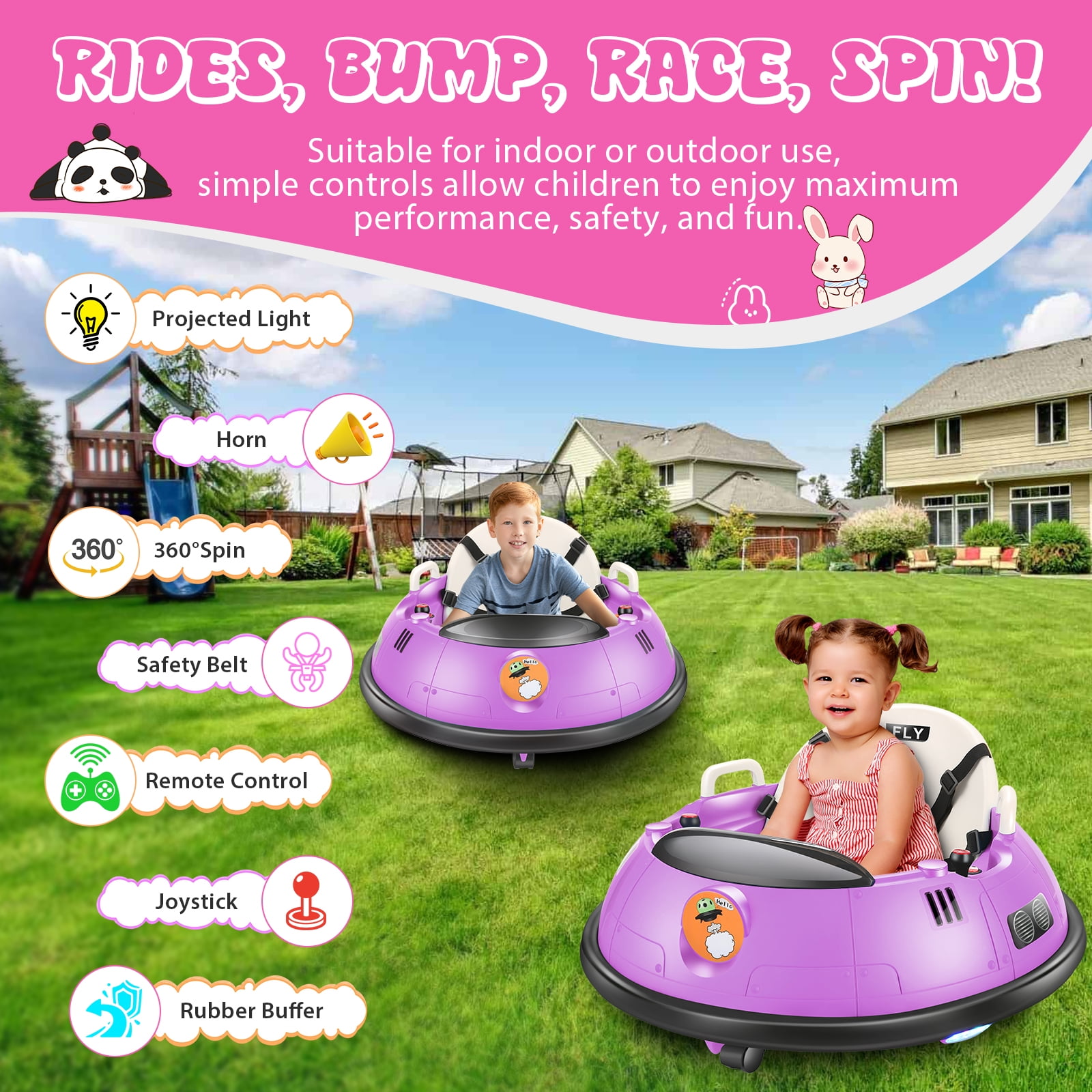 Funcid 12V Bumper Car Ride on with Remote Control, Kids Electric Baby Bumper Car for Toddlers, Toys for 1.5- 5 Girls Boys W/ 5-Point Seat Belt, 3-Speeds, Purple