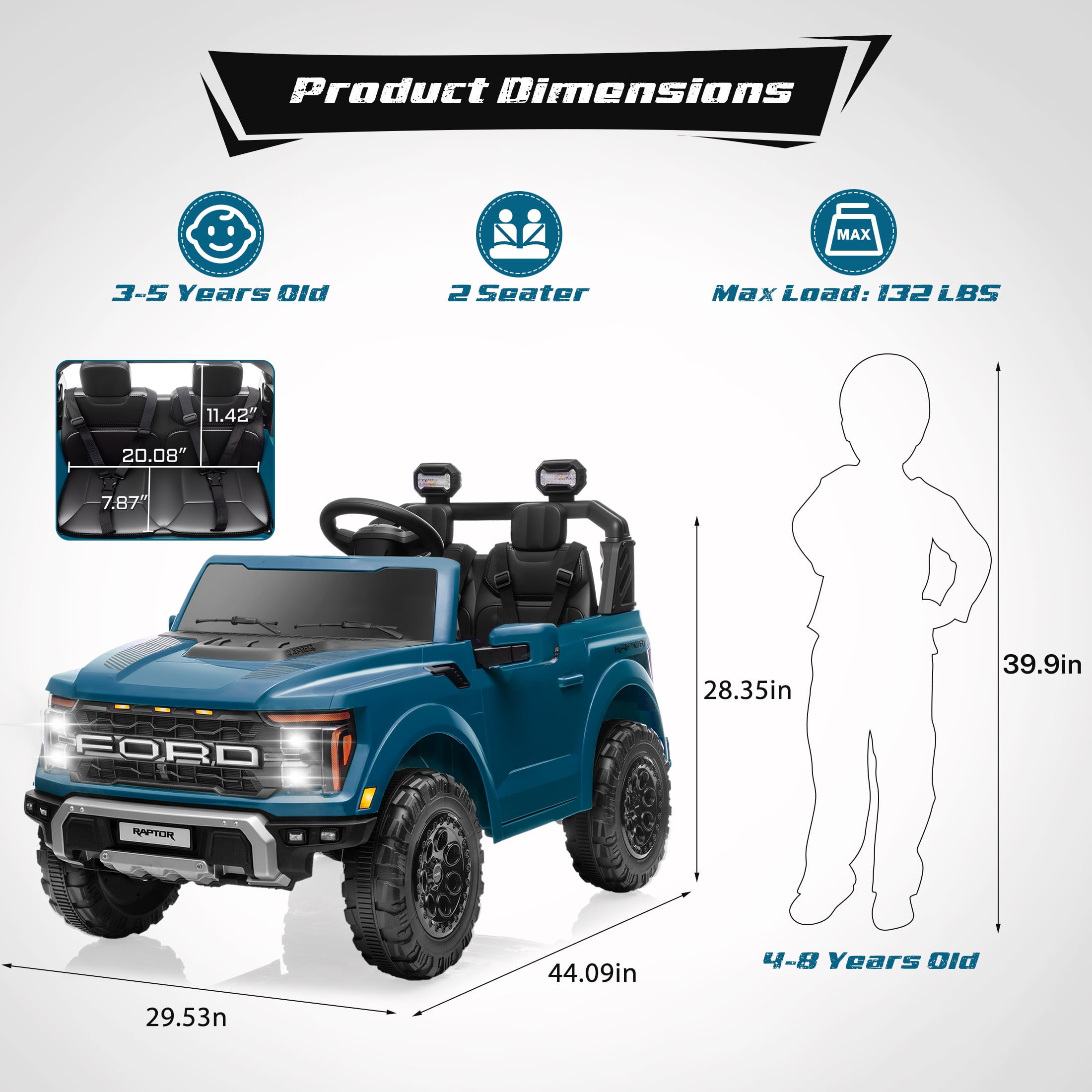 Ford F150 Raptor 24V Powered Ride on Cars for Kids, Extra large Real 2 Seater Ride on Toys with Remote Control, Bluetooth, LED, Truck Storage, Electric Vehicles Ride on Truck for Boys Girls Gifts