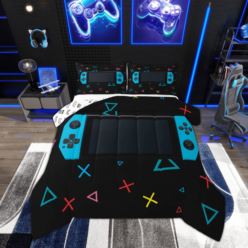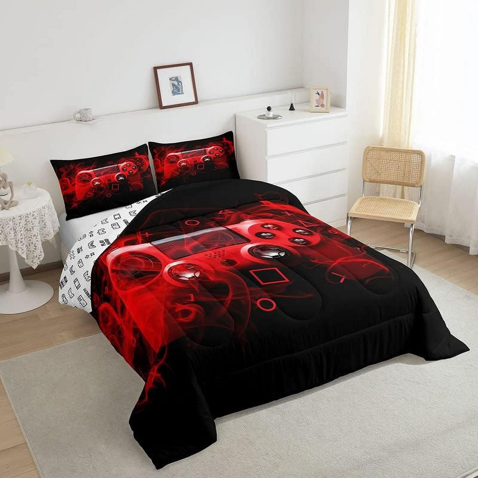Gamepad Comforterset Twin Size Gamer Bedroom Decor Teens Video Game Controller Bedding Set Youth Gaming Console Comforter Red Black Geometry With 1 Pillow Case