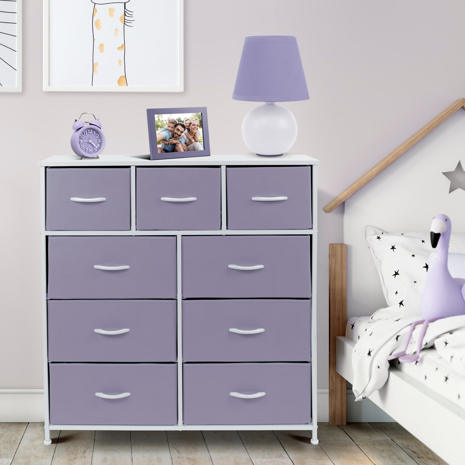 $81.69Update your child’s room with the Sorbus 9-Drawer Dresser: This colorful dresser chest features a tabletop surface and pull-out drawers to tuck away household clutter. Place all of your child’s folded t-shirts, jeans, and pajamas, or extra blankets and toys within the spacious fabric drawers. For display, the top surface can be used for lamps, books, clocks, and more. The playful color makes this furniture storage charming for any nursery, playroom, or bedroom. It is lightweight for easy transport and when not in use, simply fold the fabric drawers flat for storage. Complete the look with any drawer configuration from the Sorbus Furniture Collection. With everything you need right by your side, getting organized has never looked better. A great addition to any room for instant storage: Bring on the toys, books, and blankets! Display this charming dresser in the kid’s bedroom filled with linens and clothes or play area complete with coloring books, Legos, plushies, and dolls! The soft lightweight fabric makes it easy for kids to pull out their favorite toys for play dates or easily put them away. In the nursery, this chest brightens up your little one’s sleeping space for stylish baby storage. With kids and teens in mind, it fits pastel rainbow decor, unicorn themes, and trendy ombre colors for a fun look. Stylish kid-friendly design with easy assembly: This nine-drawer dresser chest stand is portable, lightweight, and easy to assemble. Hardware and instructions INCLUDED. Drawers made of breathable, non-woven fabric with a built-in carry handle. Frame made of steel. Tabletop surface made of MDF wood with smooth white finish. Wipes clean. Accessories shown in image NOT INCLUDED. Measures approximately 39.5″ L x 11.5″ W x 39.5″ H.
