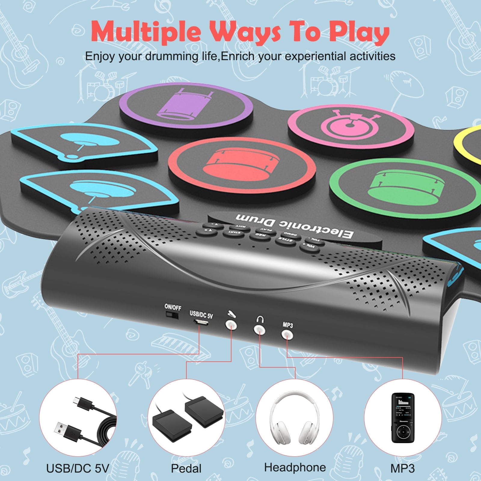 $85.99Original price was: $85.99.$32.59Current price is: $32.59.🎵ABSOKE Multifunctional Electronic Drum Set 9 Pads Portable Electronic Drum Set For Kids: Electronic Drum Sets includes: 1 SNARE, 3 TOMS, 1 CRASH, 1 RIDE, 1 HI-HAT, 7 Timbres, 12 DEMO songs, 9 Rhythms, 2 Foot Pedals. Applicable population:toy for boys age 8-12,toy for girls age 8-12,toy for kids age 8-12,drum set for toddlers 1-3, drum set for toddlers 1-3, drum set for toddlers 3-5, drum set for kids age 8-10, drum sets for kids age 10 and up,kids drums for age 8-12