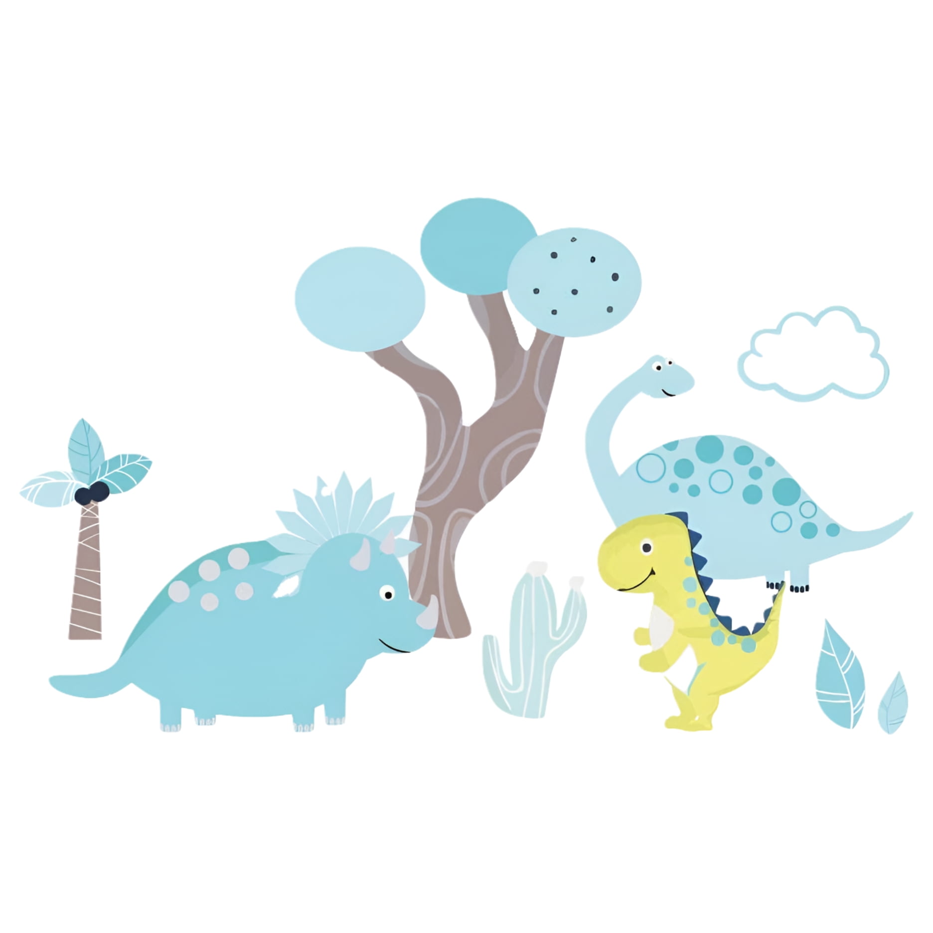 8 PC Dinosaur Crib Bedding Set for Baby Boys, Blue Nursery Set with Quilt/Sheet/Dust Ruffle/Blanket/Diaper Stacker/3 Wall Stickers