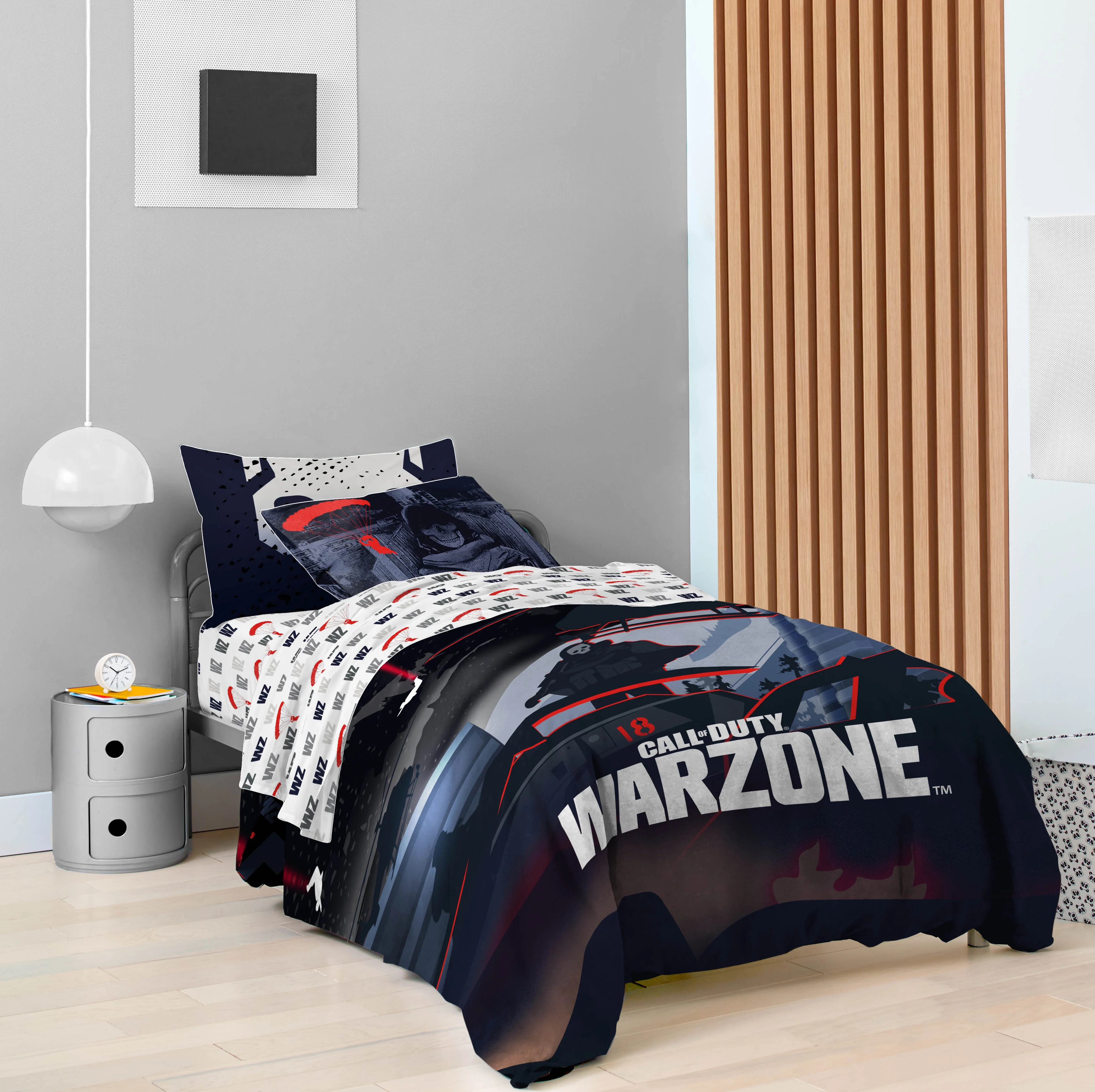 $38.68Original price was: $38.68.$30.03Current price is: $30.03.Leave no man behind with this Call of Duty 5 Piece Kids Reversible Twin Bed Set with Sham. Set includes a comforter, one sham, fitted sheet, flat sheet, and one standard sized pillowcase. This bed set features Call of Duty Warzone artwork atop allover printed sheets. Made from 100% Microfiber, this bed set is the perfect weight to keep your child comfortable all year round. Simple care instructions include machine wash cold and tumble dry low. Complete the look by shopping our other Call of Duty home and bedding items, sold separately on .