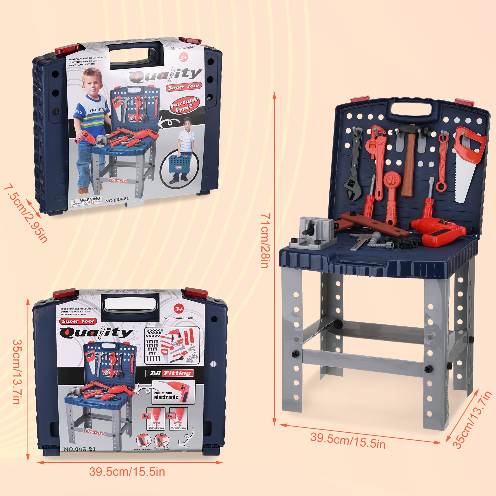 $43.00Description: SAFE: This foldable tool bench is designed for children, made with ABS that is non-toxic and hypoallergenic, ensuring a safe playtime experience. VARIETY FOR INSPIRATION: With 68 pieces, this tool box toy offers a wide range of options for children’s exploring and learn, promoting eye-hand coordination and inspiring their creativity. SIZE AND EASY TO GRASP: The exquisite craft of this children’s tool set ensures smooth lines and burr-free edge, while the compact size makes it easy for kids to hold and manipulate. PROMOTES RESPONSIBILITY AND ORGANIZATION HABIT: By providing a realistic work experience, this tool set encourages children to take responsibility for their tasks and develop good organization habits. FAMILY GAMES FOR FUN: This children’s tool bench not only allows kids to play independently but also creates opportunities for family bonding, as parents can join in to foster a joyful and interactive playtime. Specification: Color: Multicolor. Material: ABS. Size: Approx 42*28*58CM/16.54*11.02*22.83inch. Note: There might be a few color distortions due to different computer resolutions. There might be a slight error due to different hand measurements. Package Includes: 68Pcs Kids Bench Tool Set