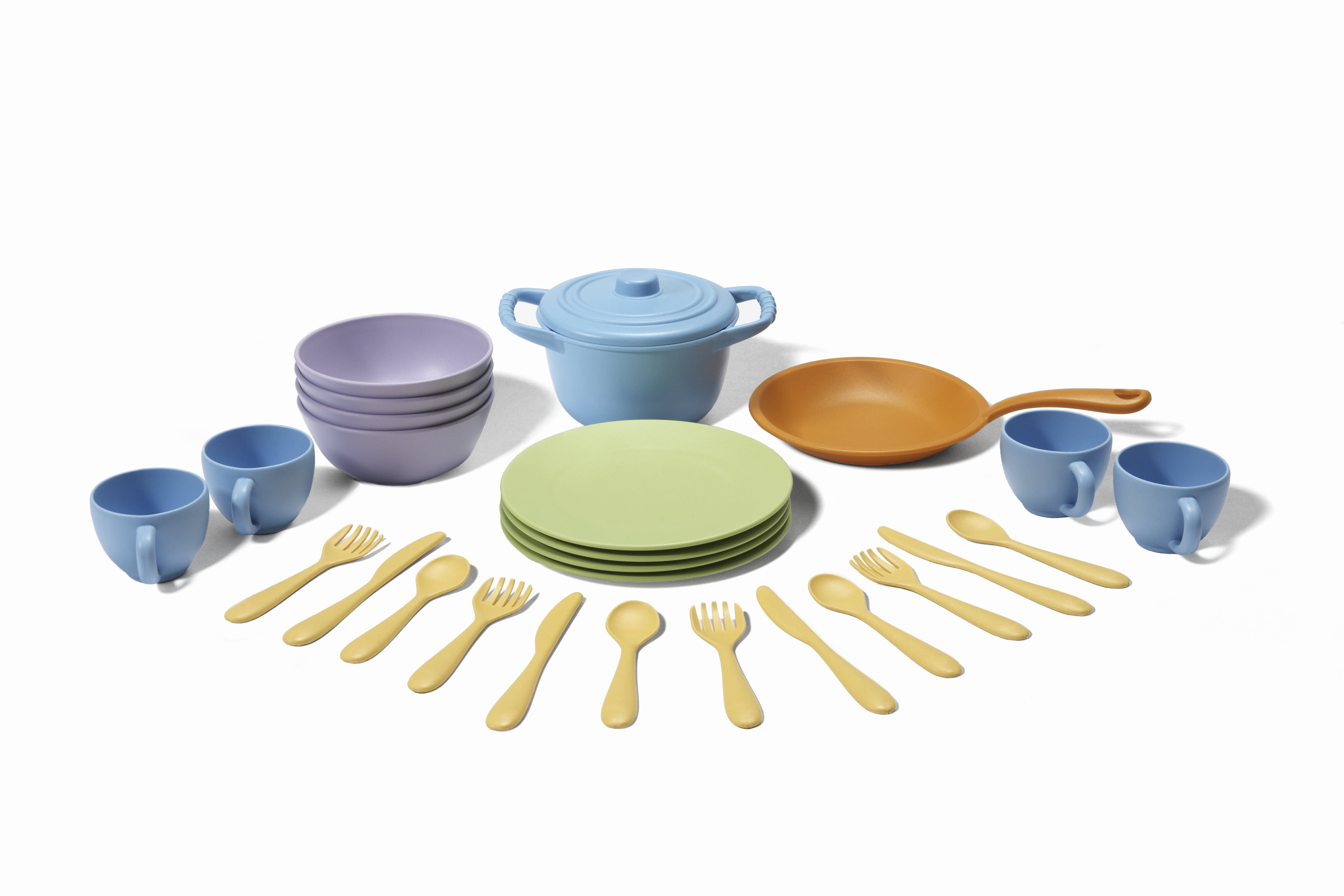 Green Toys 27 Piece Cookware & Dining Plastic Play Dish Set, Multi-color