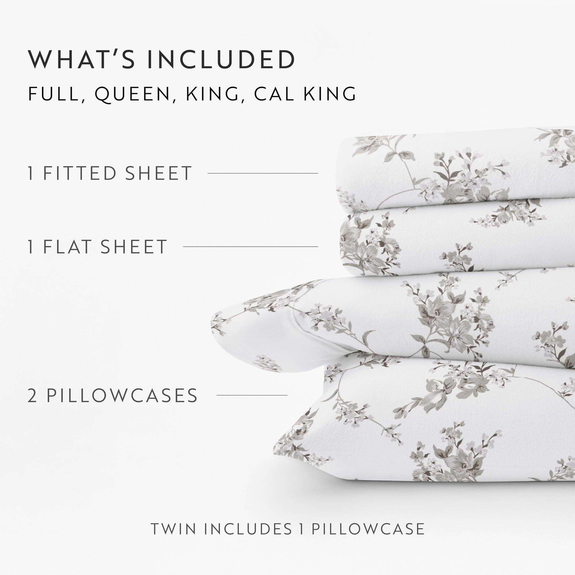 Gray Sylvan Rose 4 Piece 100% Cotton Flannel Deep Pocket Sheet Set, King, by Noble Linens