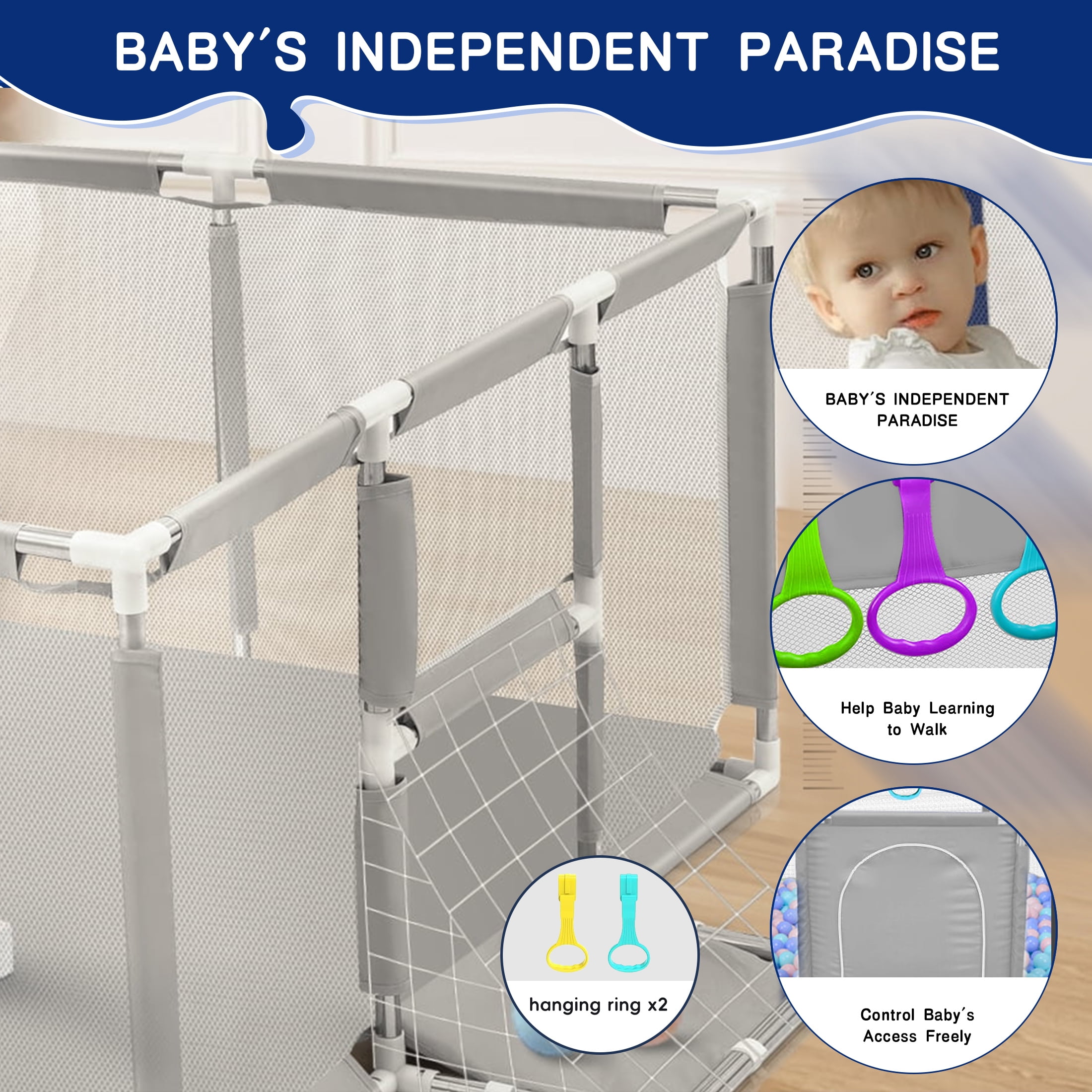 HioHa Extra Large Baby Playpen, Big Play Pens for Babies and Toddlers, Gap-Free, Climb-Proof Baby Playards for Indoor Fun, Baby Gate Playpen with Zippered Door and Storage Bag