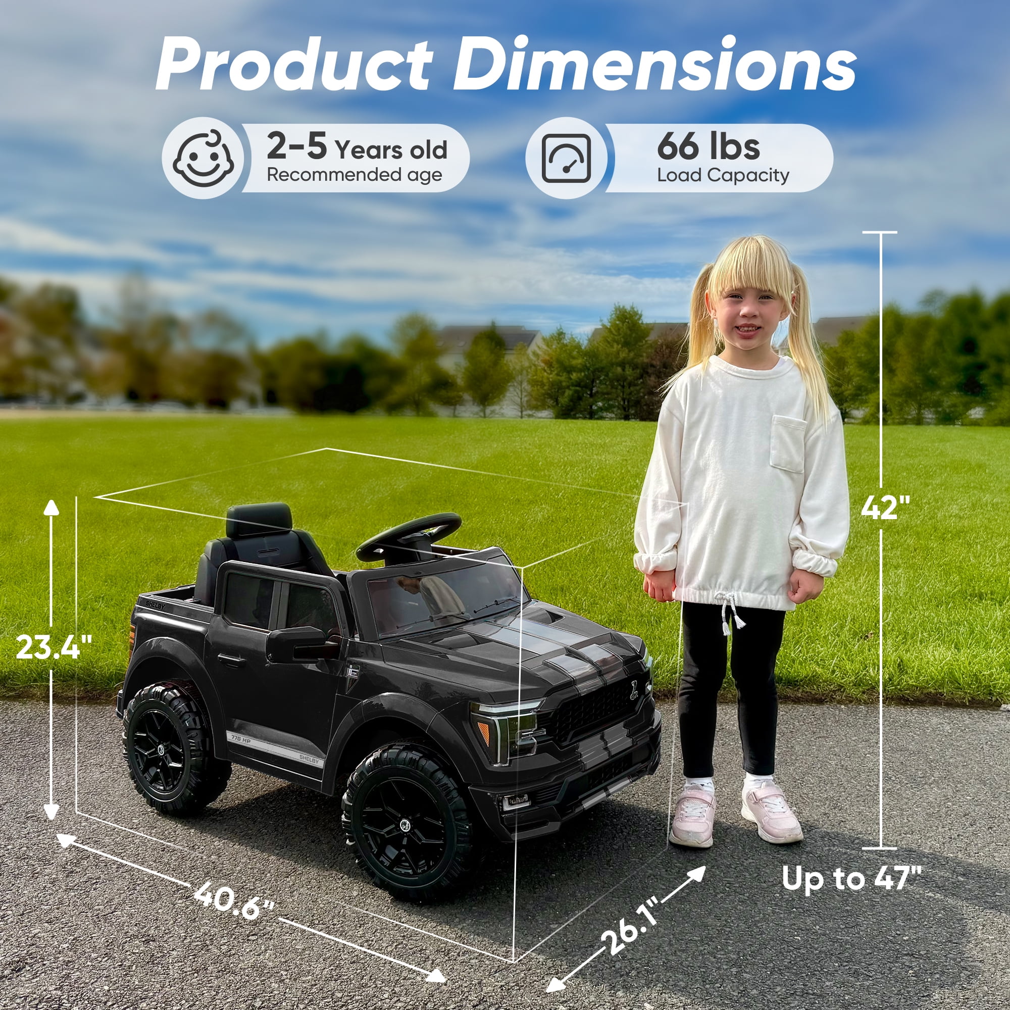 Hikiddo Electric Car for Kids, Licensed Ford-Shelby F-150 12V Ride on Truck Toys for Toddlers w/ Remote, 2-Hour Drive Time – Black