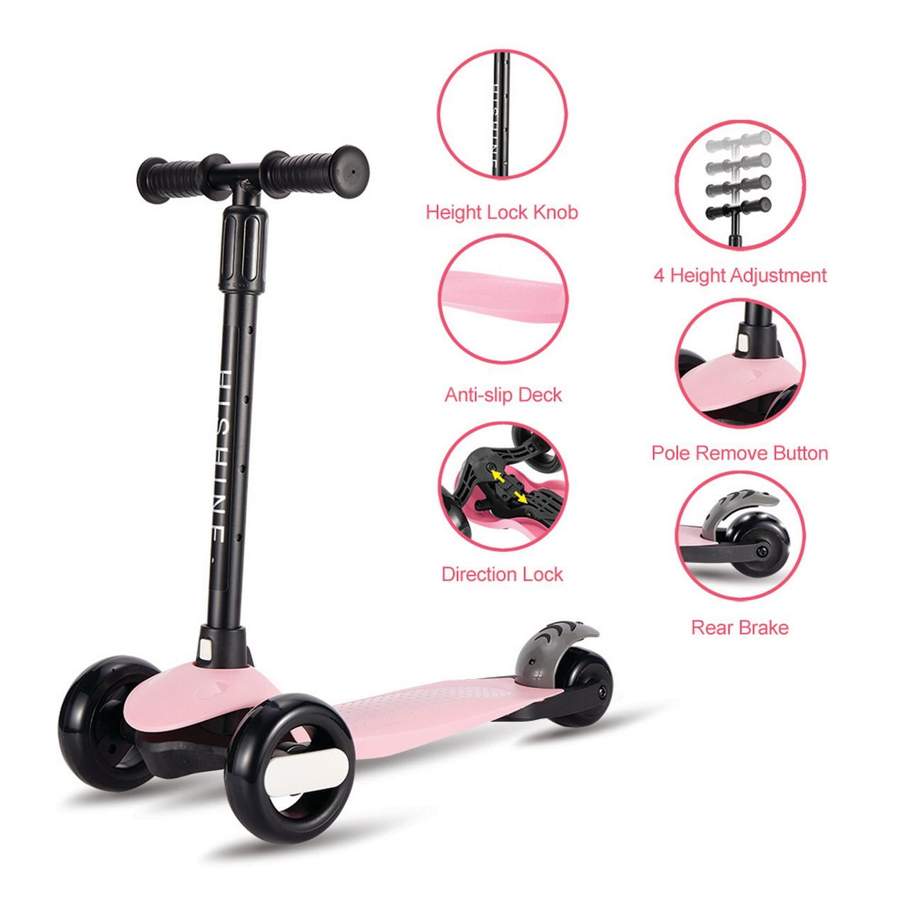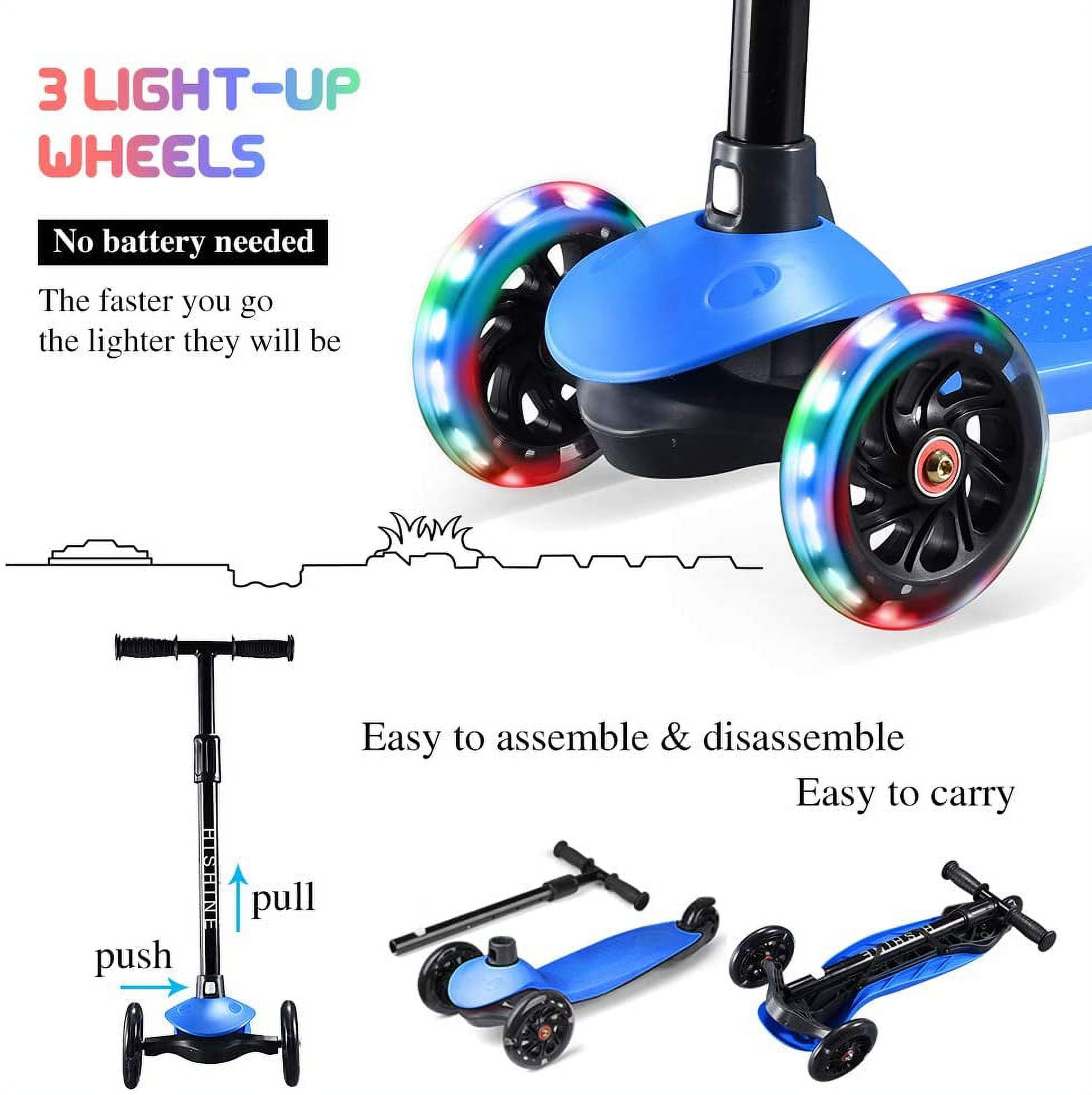 Hishine Kick Scooter for Kids with 3 Light Up Wheels and Adjustable Height for 2-7 Years Old Ages Girls and Boys Toddlers & Children, Lean to Steer, 3-wheeled Scooters, Blue