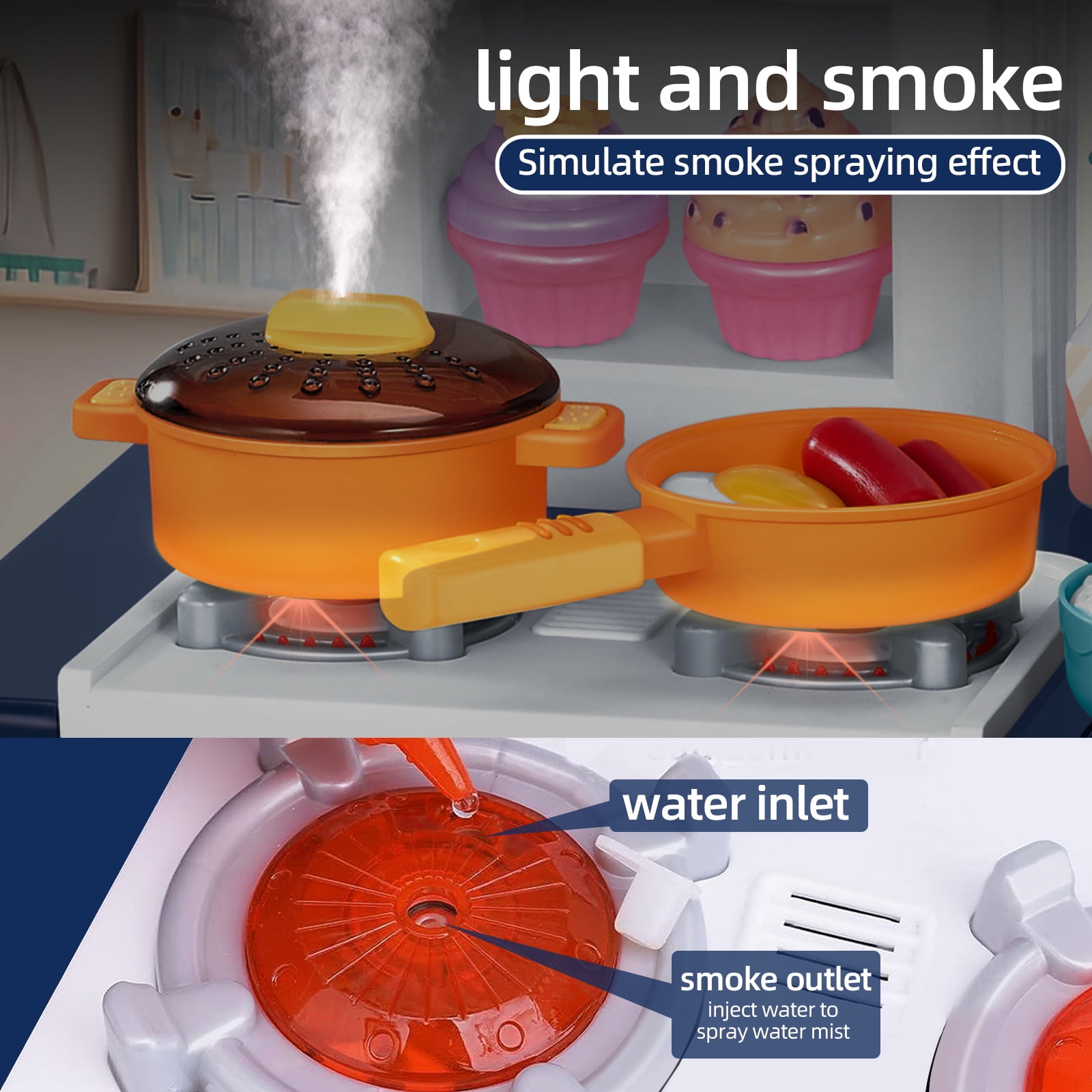 Hot Bee Blue 34 inch Toy Kitchen Sets for Girls Boys, Pretend Play Kitchen Accessories Sets w/ Realistic Cooking Sounds&Lights, Christmas Gifts Toys for Kids 3 4-8